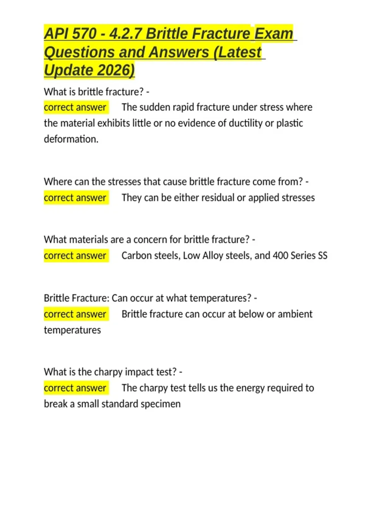API 570 - 4.2.7 Brittle Fracture Exam Questions and Answers (Latest Update 2026).docx