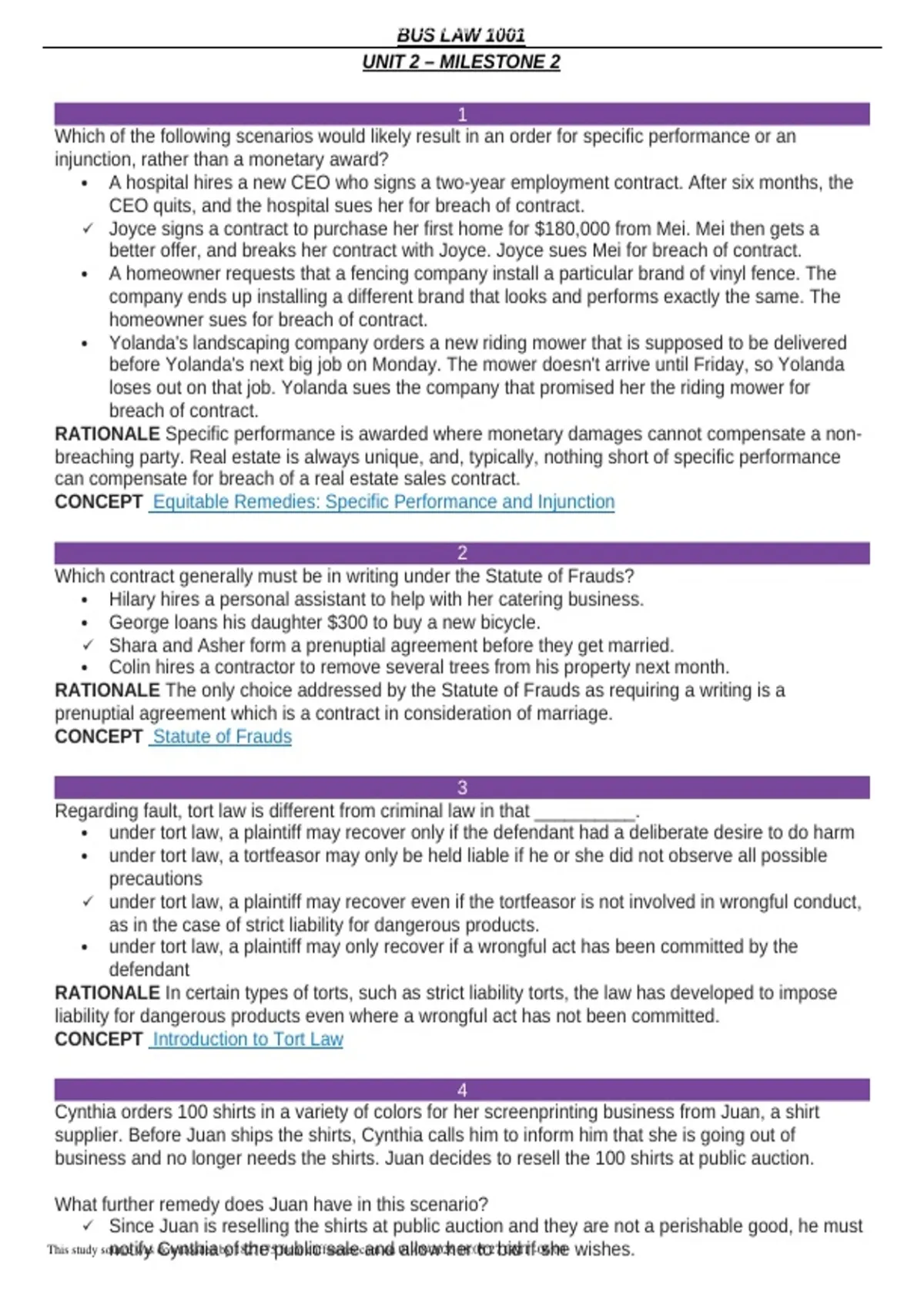 BUS LAW 1001 – Unit 2, Milestone 2 | 2026 Verified Answers & Solutions
