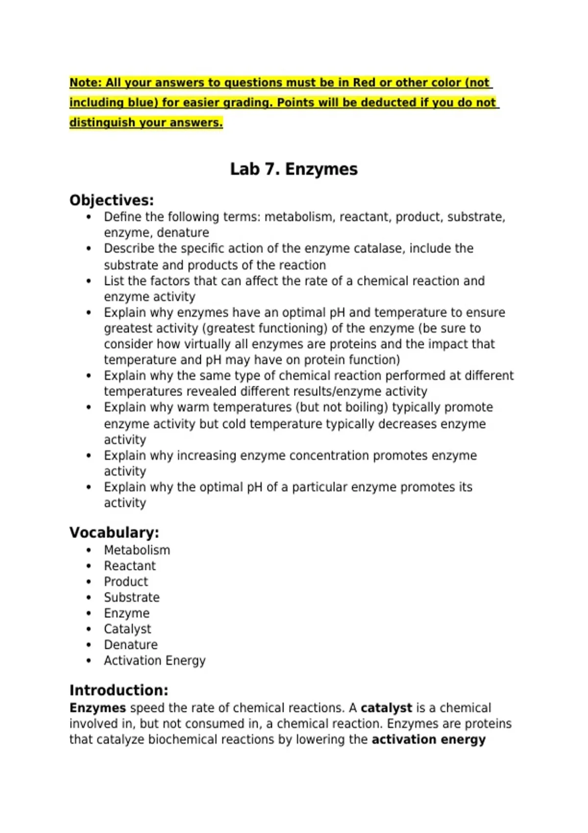 , Lab 7. Enzymes Exam Complete Study Guide With Solution Lab 7. Enzymes.pdf
