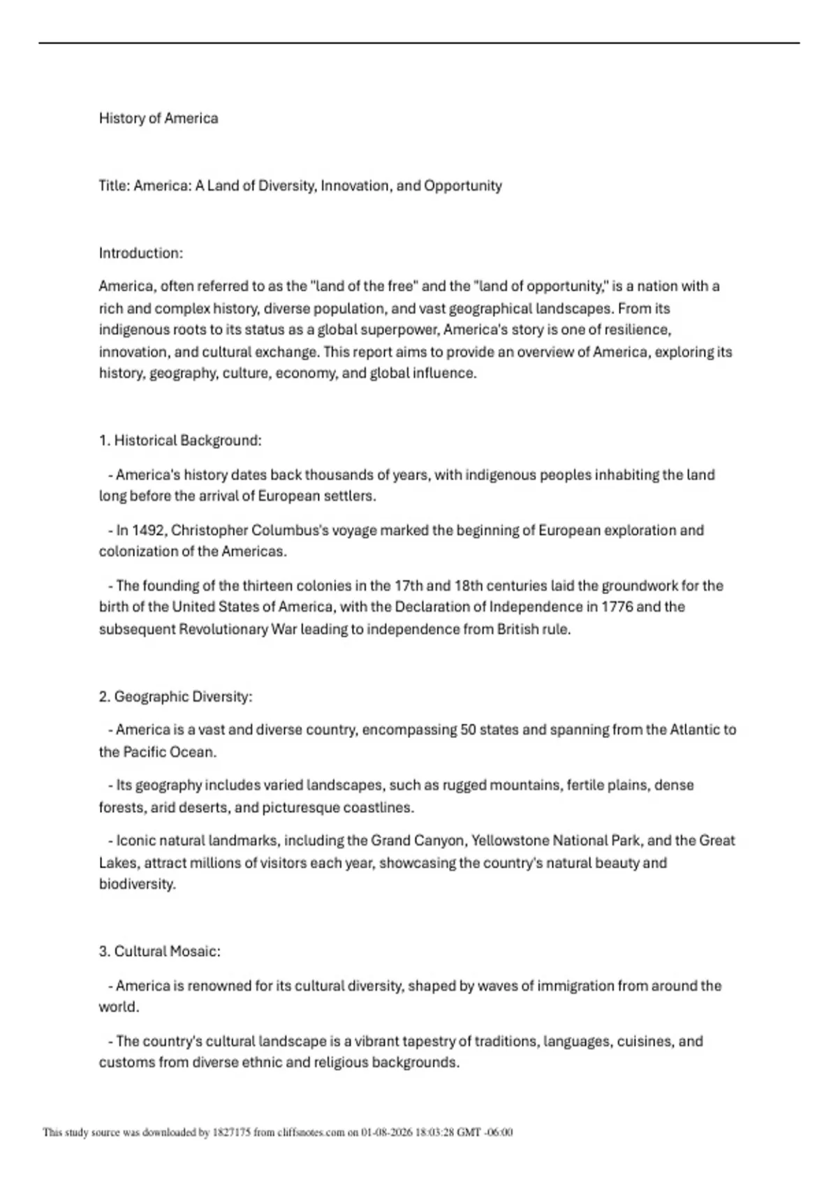 innovation, and cultural exchange. This report aims to provide an overview of America, exploring its