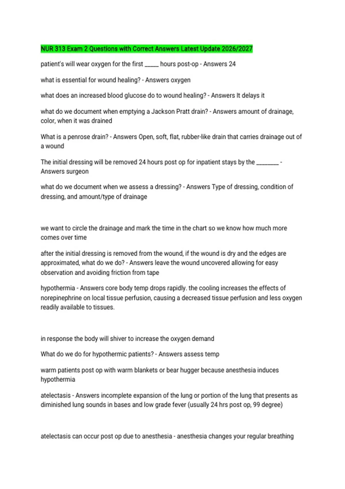 atelectasis can occur post op due to anesthesia - anesthesia changes your regular breathing