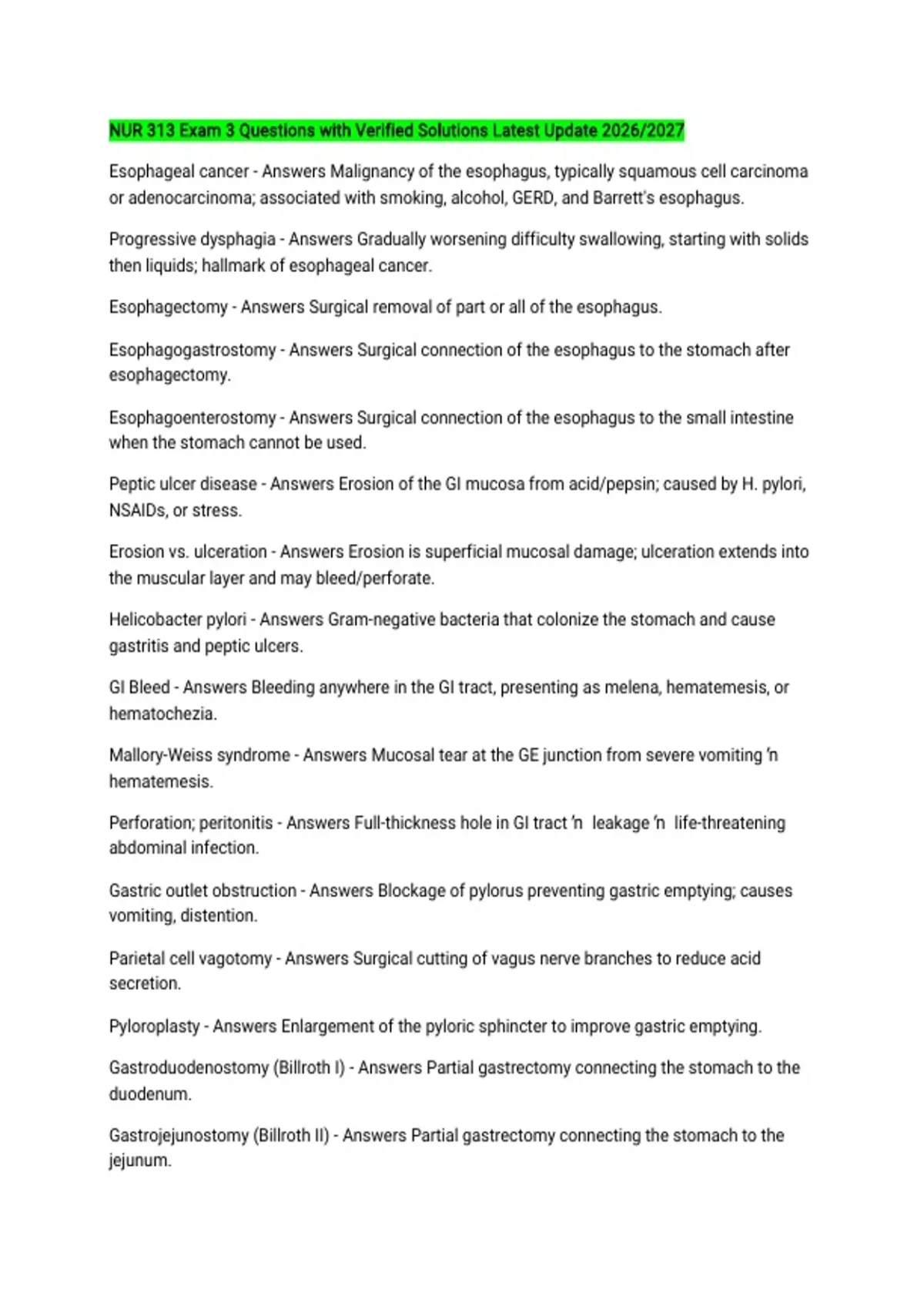 GI Bleed - Answers Bleeding anywhere in the GI tract, presenting as melena, hematemesis, or