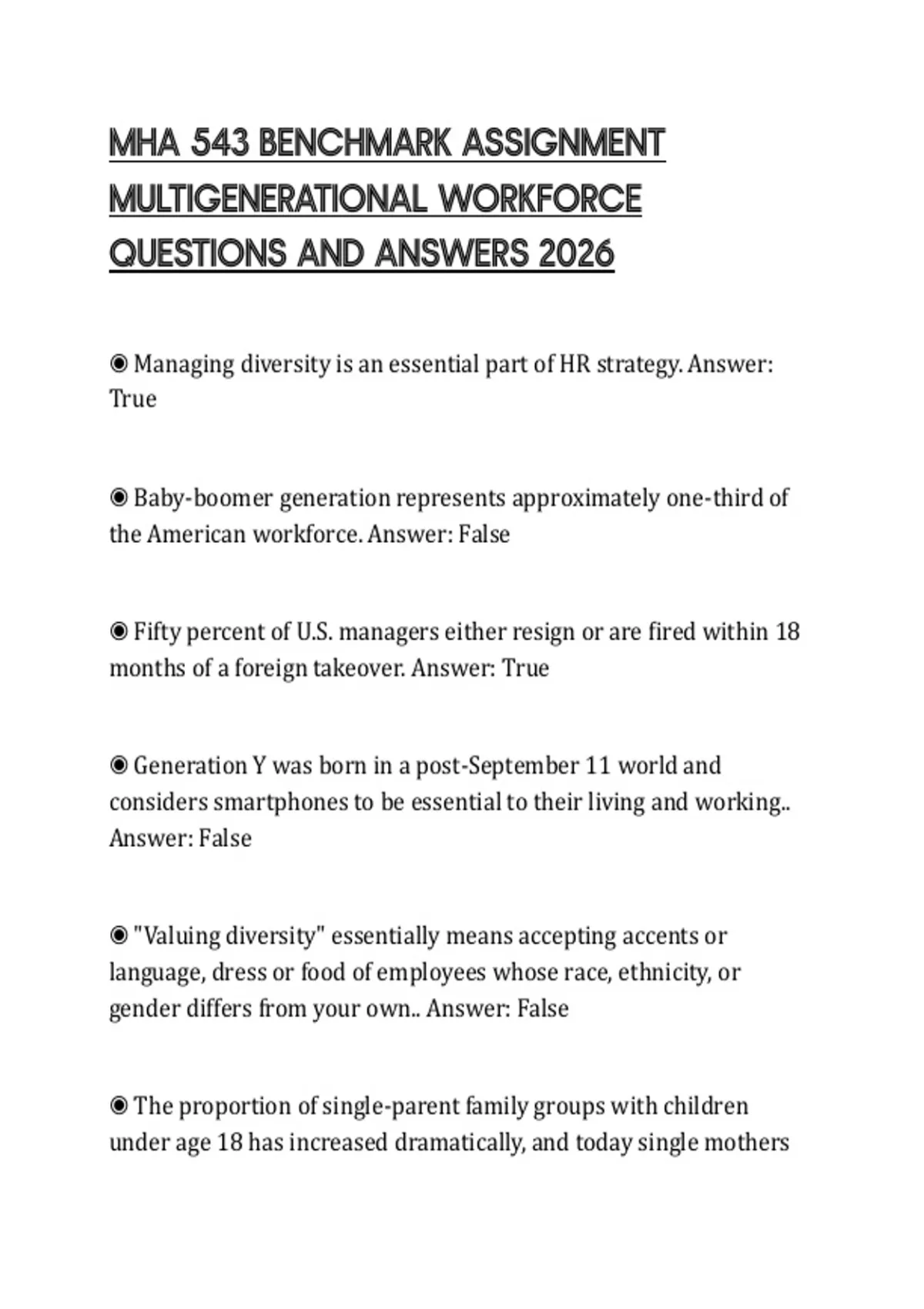 MHA 543 BENCHMARK ASSIGNMENT MULTIGENERATIONAL WORKFORCE QUESTIONS AND ANSWERS 2026