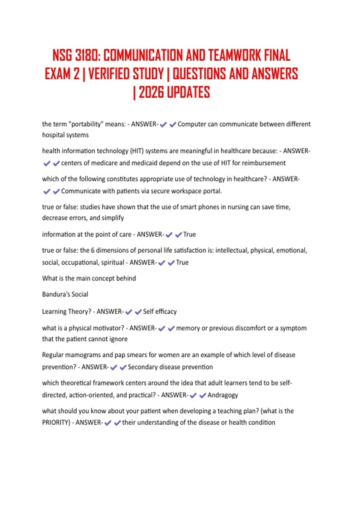 NSG 3180: COMMUNICATION AND TEAMWORK FINAL EXAM 2 | VERIFIED STUDY | QUESTIONS AND ANSWERS | 2026 UPDATES