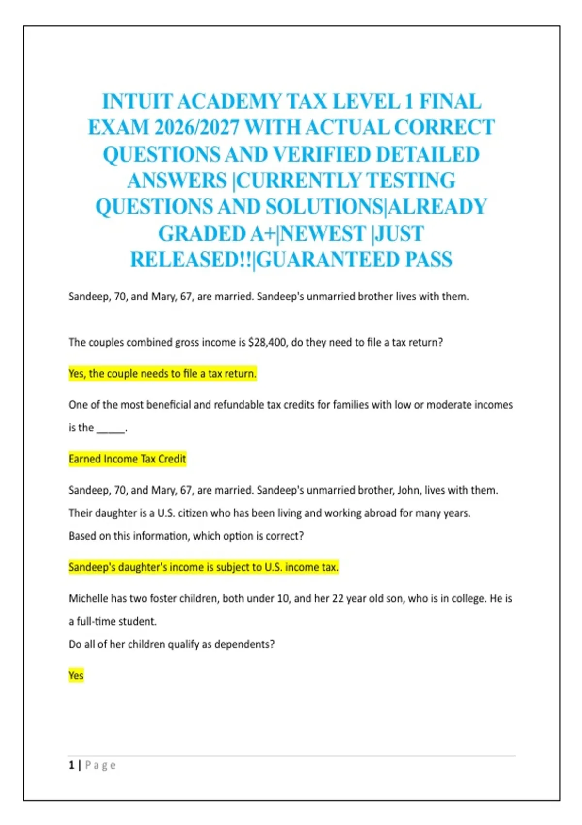 EXAM 2026/2027 WITH ACTUAL CORRECT