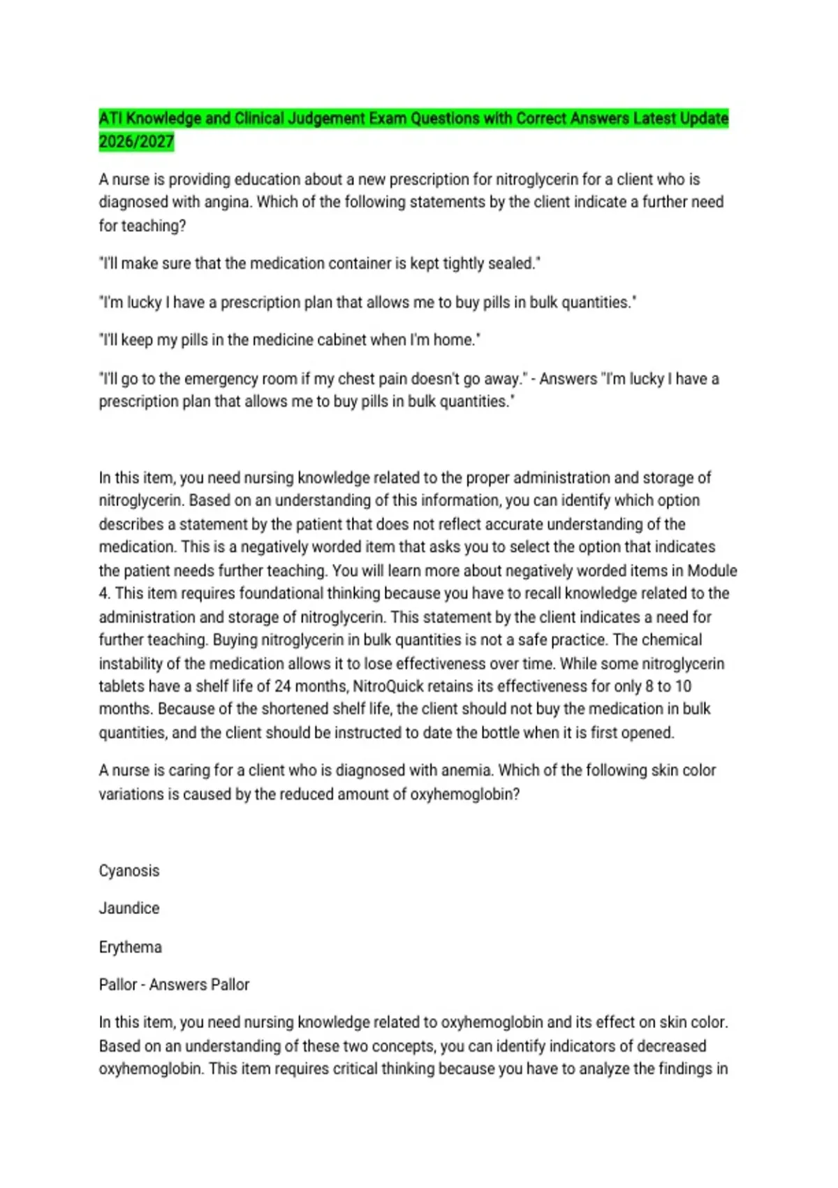 In this item, you need nursing knowledge related to oxyhemoglobin and its effect on skin color.