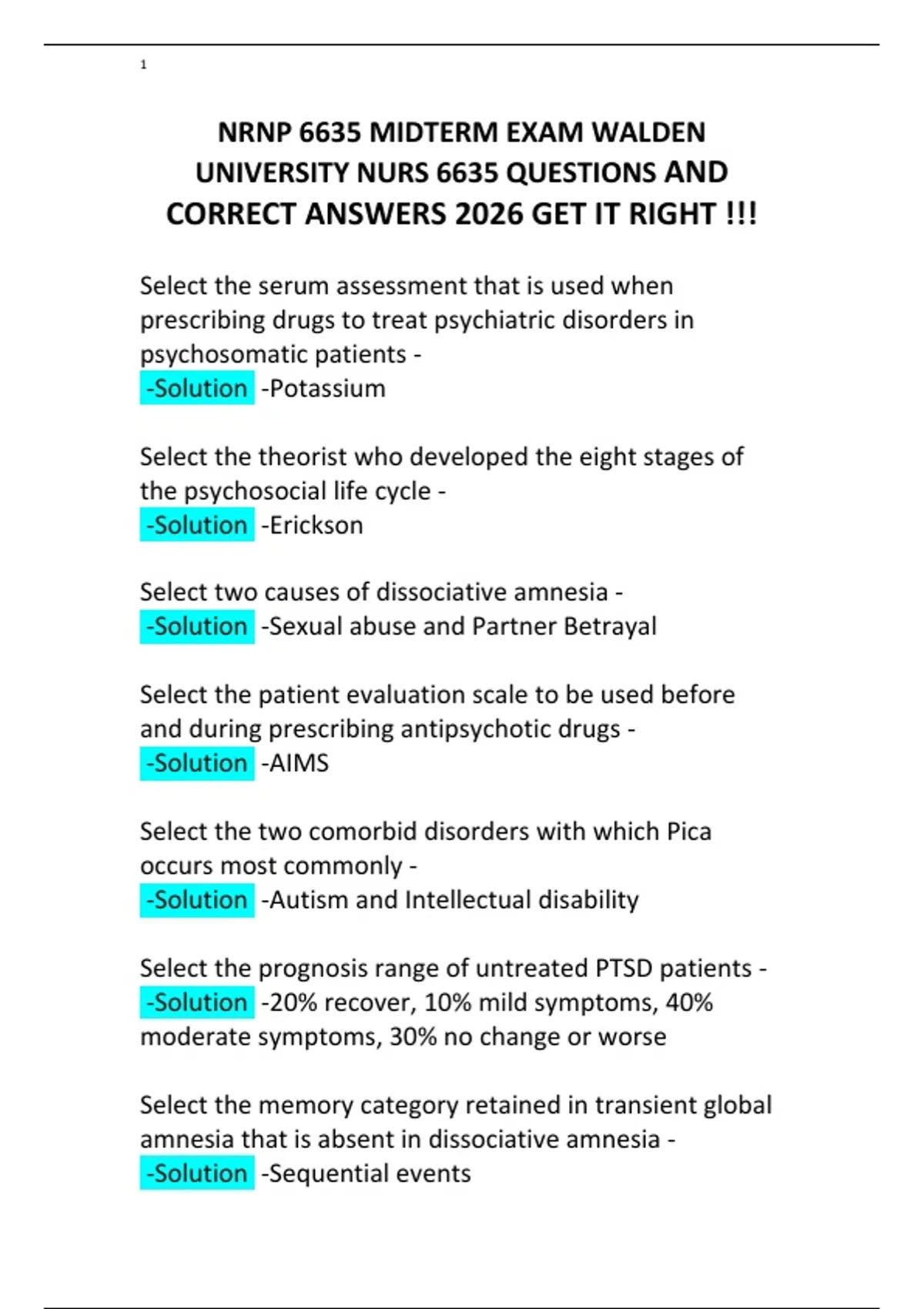 NRNP 6635 MIDTERM EXAM WALDEN UNIVERSITY NURS 6635 QUESTIONS AND CORRECT ANSWERS 2026 GET IT RIGHT !!!