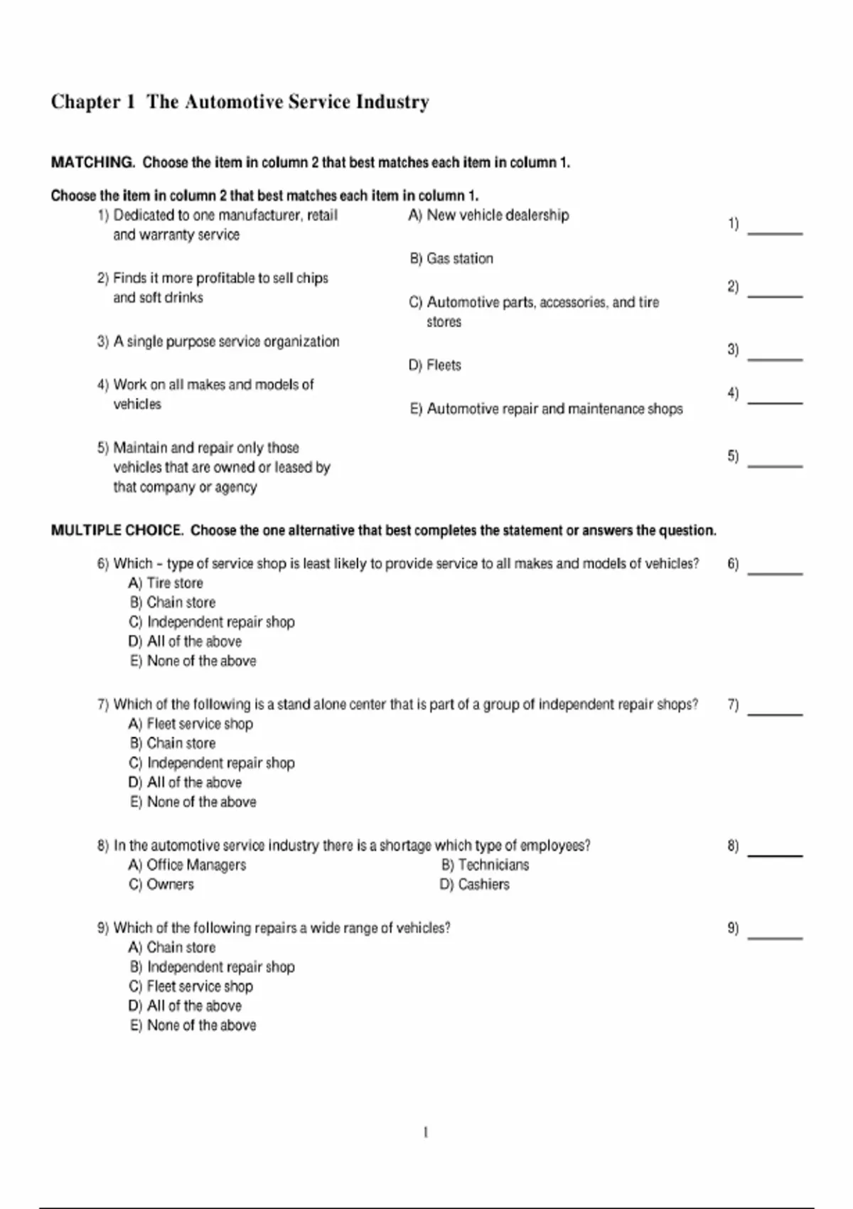 Test Bank for Automotive Service Management, 3rd edition By Andrew Rezin