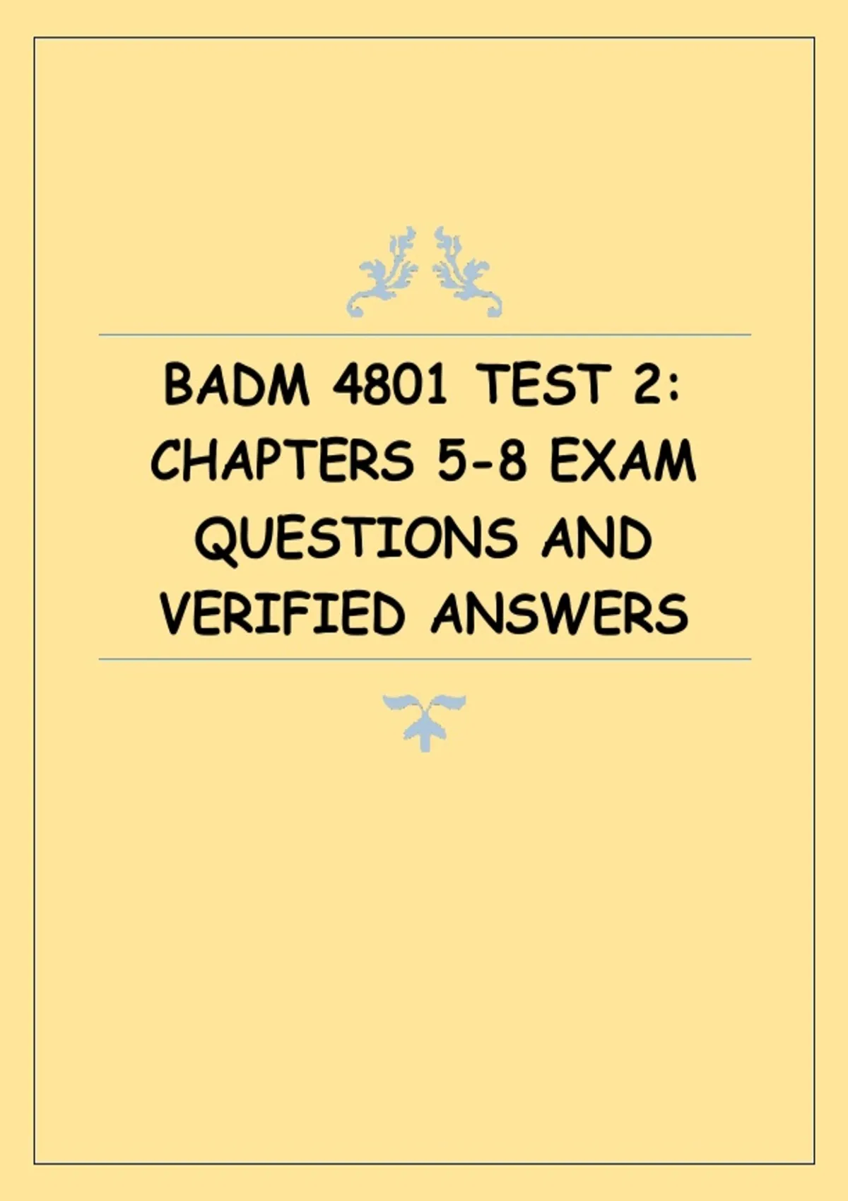 This document includes exam questions and verified answers for BADM 4801 Test 2, focusing on Chapters 5 through 8 of Strategy Formulation & Implementation. It covers core topics such as competitive strategies, corporate-level strategy, strategy execution, and performance evaluation, making it ideal for targeted exam preparation.