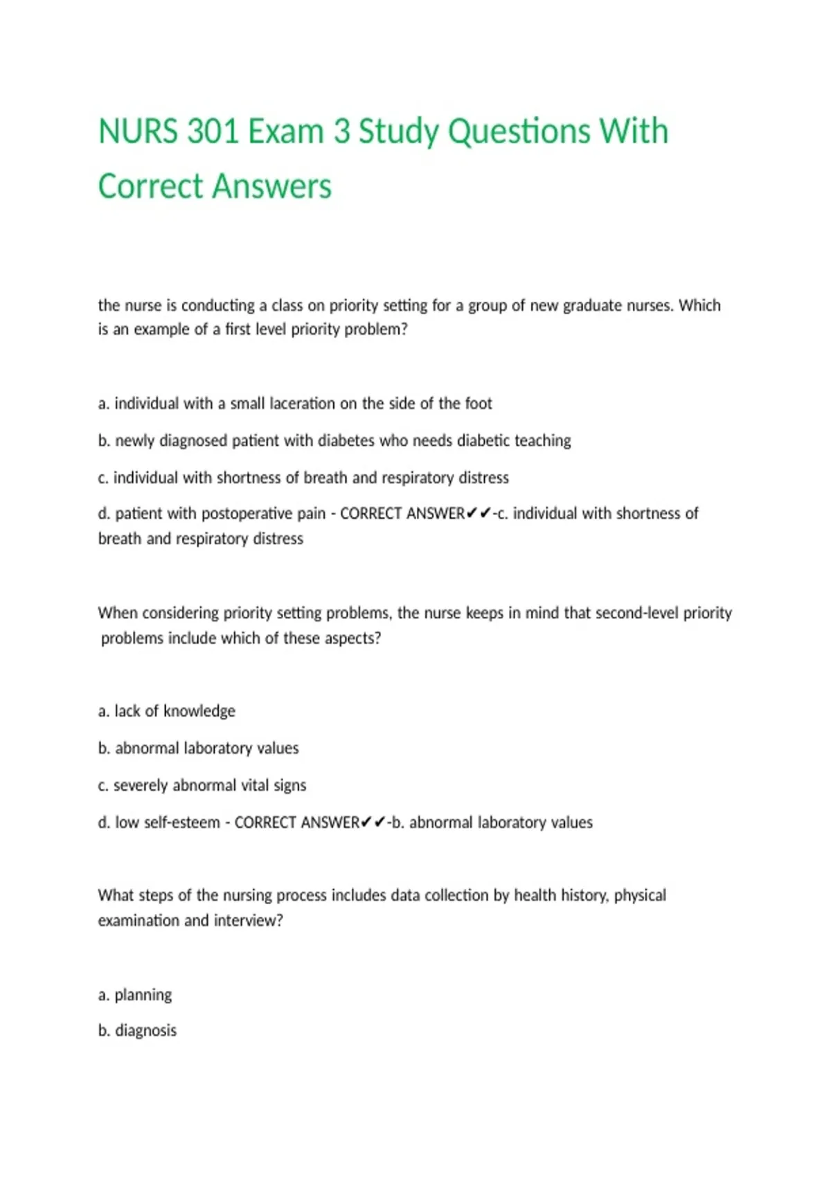 NURS 301 Exam 3 Study Questions With