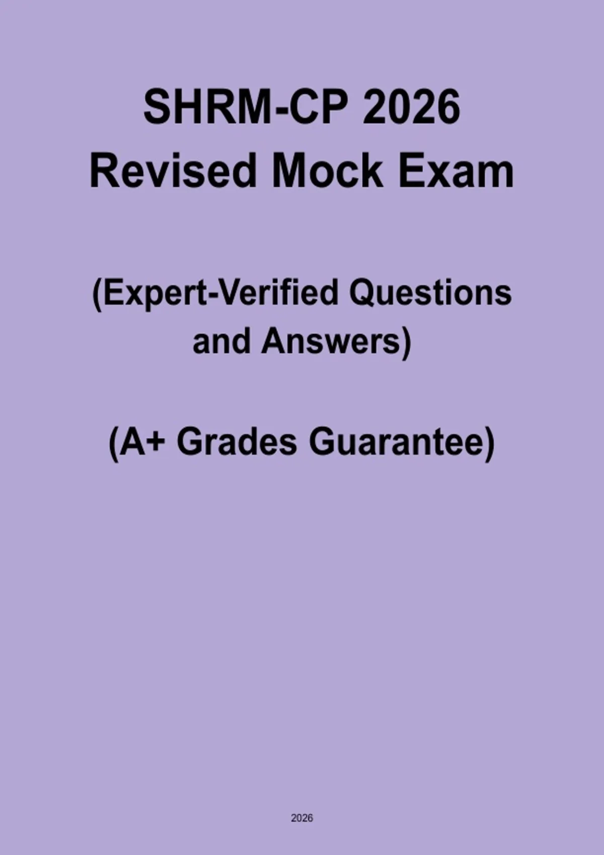 The SHRM-CP 2026 Revised Mock Exam is a targeted practice resource for HR professionals preparing for the SHRM Certified Professional (SHRM-CP) exam. Featuring updated, realistic exam-style questions across all HR domains—People, Organization, Workplace, and Strategy—this mock exam allows candidates to assess knowledge, identify weak areas, and reinforce critical concepts. Ideal for first-time exam takers and recertification candidates, it strengthens strategic decision-making skills and builds confidence to successfully pass the SHRM-CP certification exam in 2026.