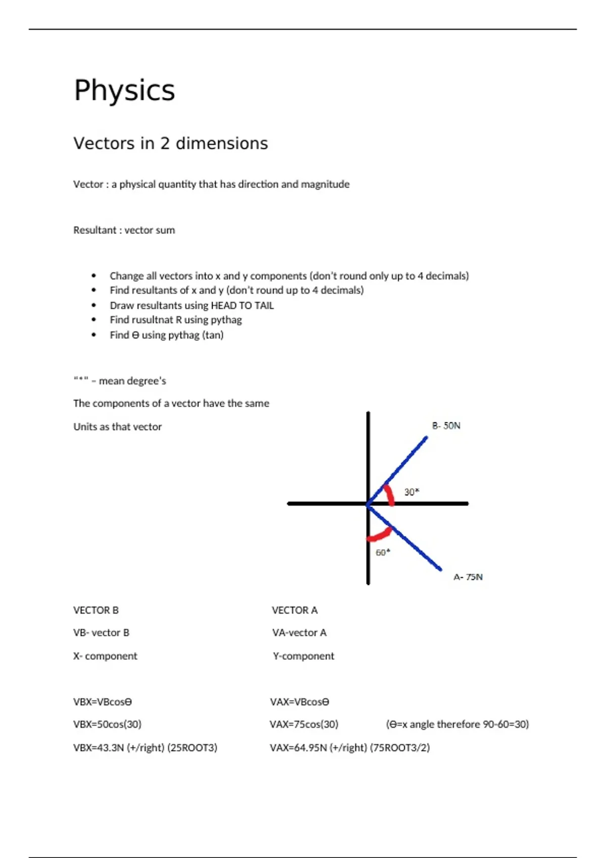 VBX=50cos(30) VAX=75cos(30) (ϴ=x angle therefore 90-60=30)