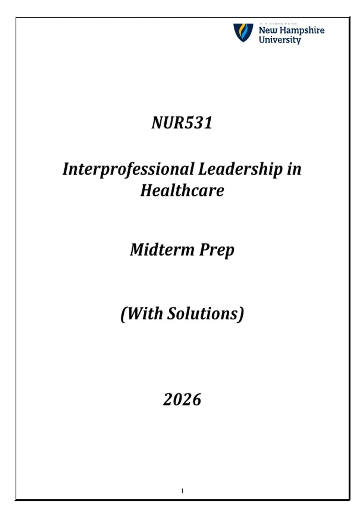 SNHU-NUR531 (Interprofessional Leadership) Midterm Exam Prep 2026 (Qns & Ans)SNHU-NUR531 (Interprofessional Leadership) Midterm Exam Prep 2026 (Qns & Ans)SNHU-NUR531 (Interprofessional Leadership) Midterm Exam Prep 2026 (Qns & Ans)