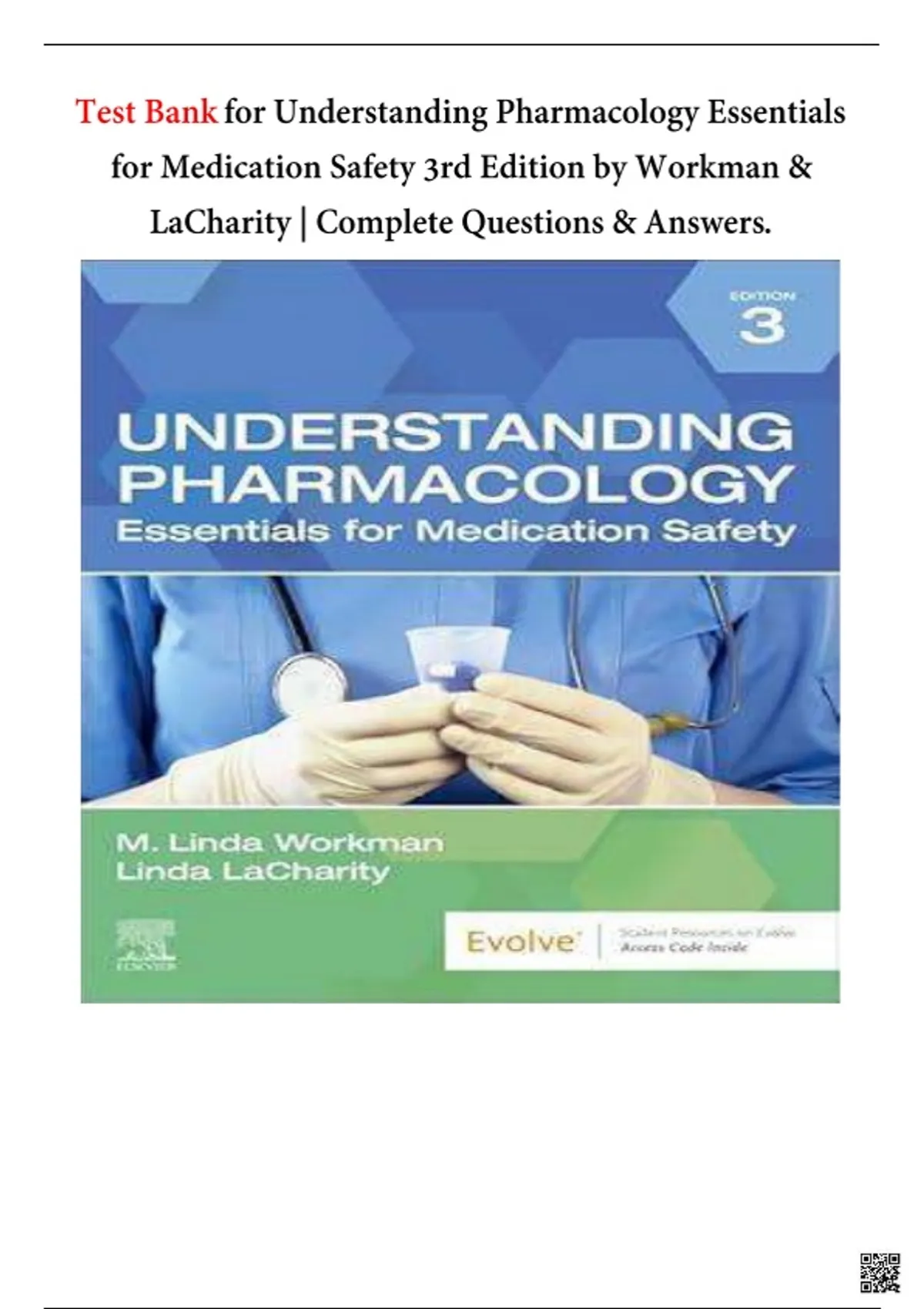 Complete Test Bank for Understanding Pharmacology: Essentials for Medication Safety 3rd Edition by M. Linda Workman & LaCharity. This digital resource includes verified questions and answers for all chapters, ideal for nursing students and instructors focused on safe medication administration, drug classifications, and patient education. Aligns perfectly with the textbook for effective exam preparation and course review.