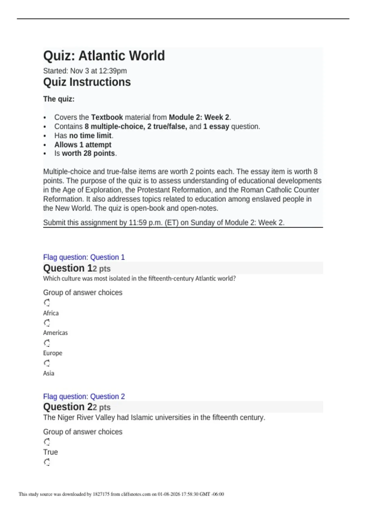 Quiz Atlantic World.pdf Page 2 of 5 Exam Preparation Complete Study Guide with Solution 2025/ 2026