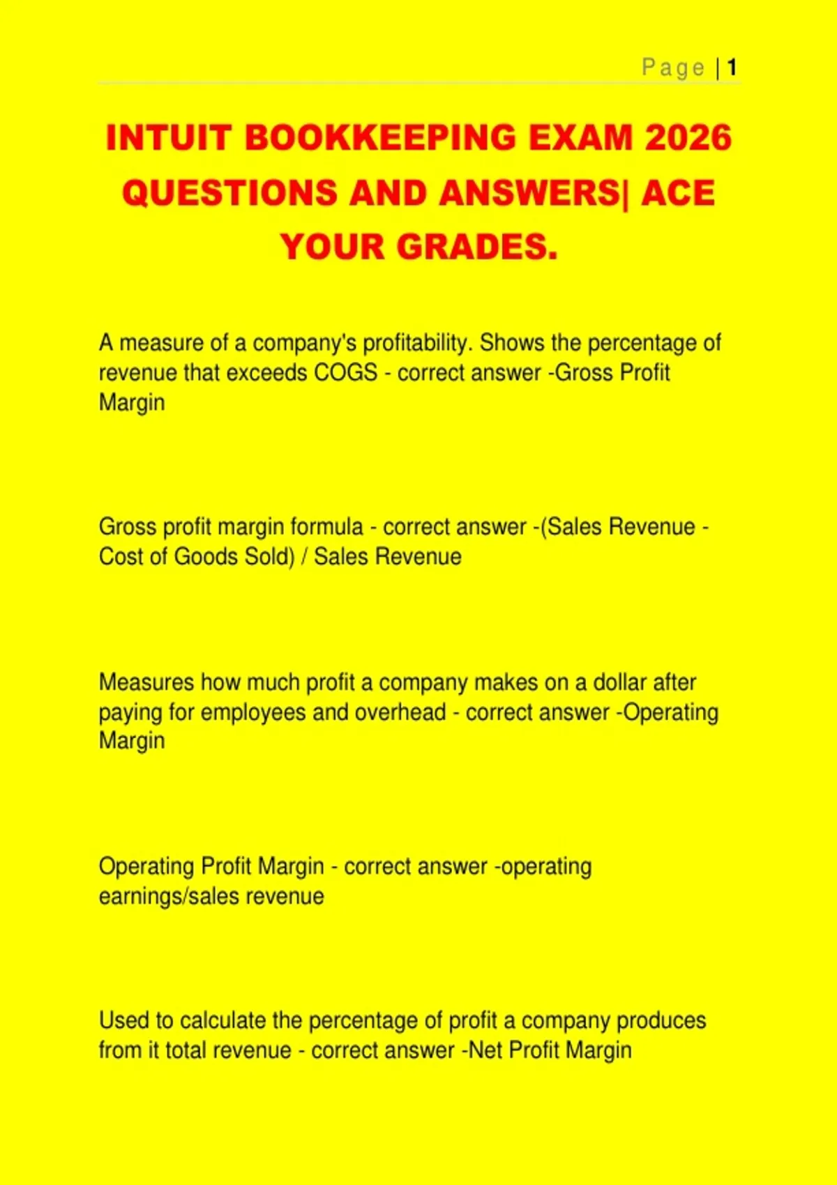 INTUIT BOOKKEEPING EXAM 2026