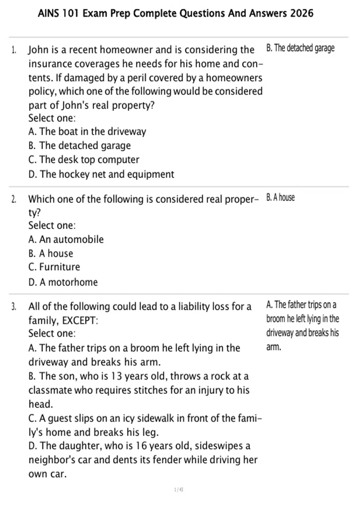 , AINS 101 Exam Prep Complete Questions And Answers 2026
