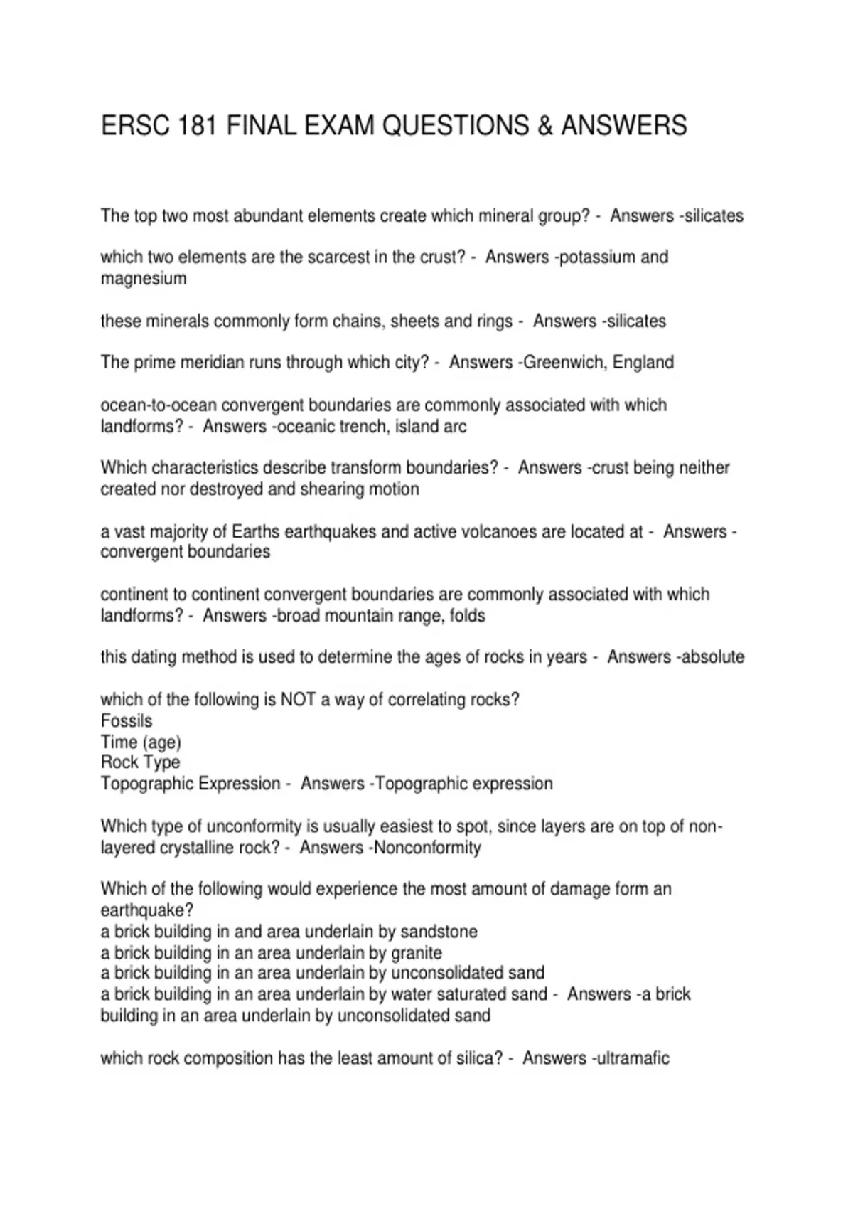ERSC 181 FINAL EXAM QUESTIONS & ANSWERS