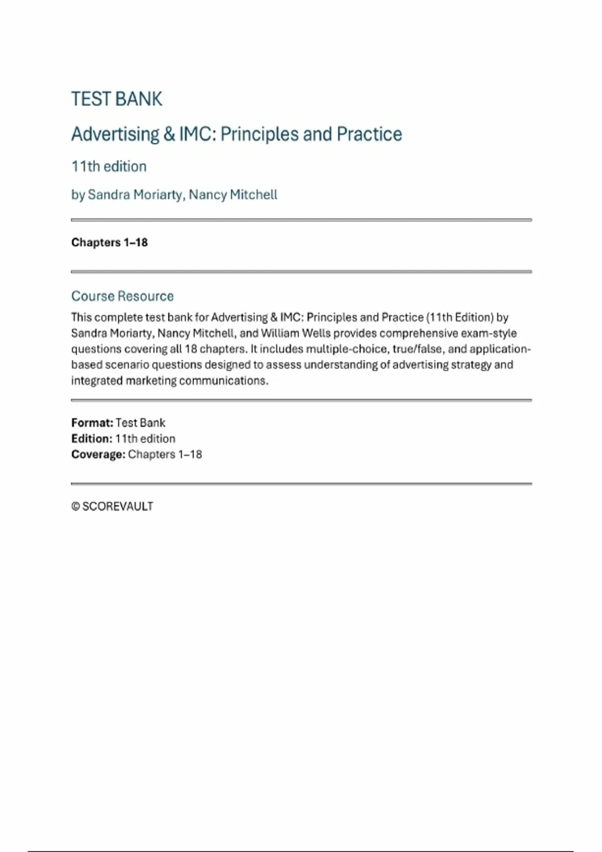 Advertising & IMC: Principles and Practice (11th Edition, Sandra Moriarty, Nancy Mitchell & William Wells) — Complete Test Bank (Chapters 1–18 | Latest Update)