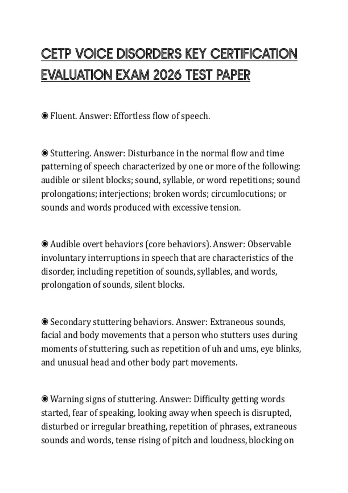 CETP VOICE DISORDERS KEY CERTIFICATION EVALUATION EXAM 2026 TEST PAPER