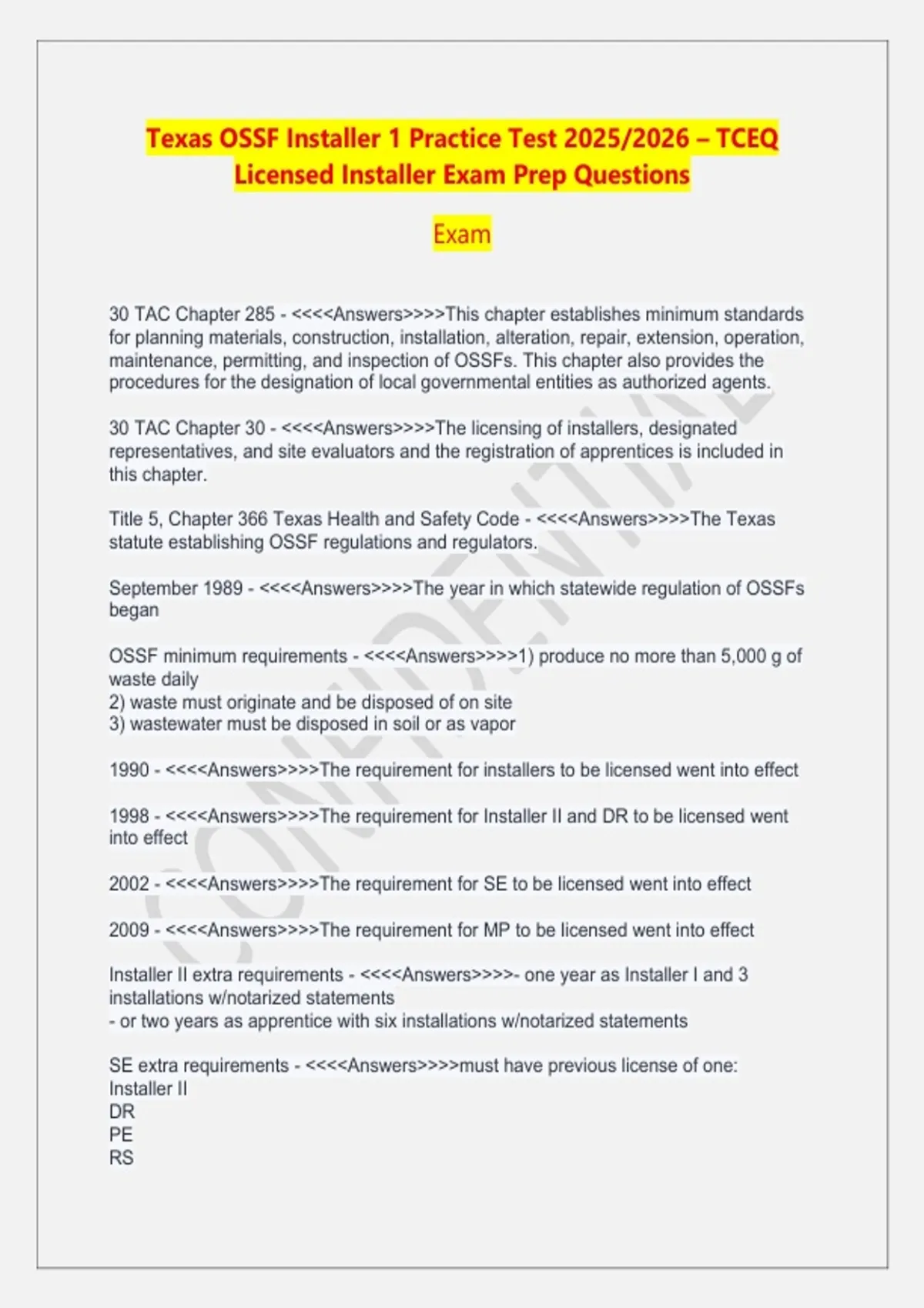 Texas OSSF Installer 1 Practice Test 2025/2026 – TCEQ Licensed Installer Exam Prep Questions Exam