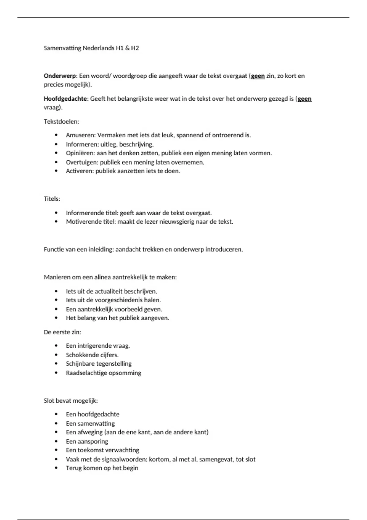 Hoofdgedachte: Geeft het belangrijkste weer wat in de tekst over het onderwerp gezegd is (geen
