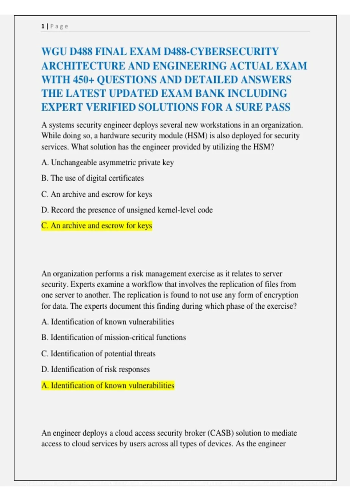 WGU D488 FINAL EXAM D488-CYBERSECURITY