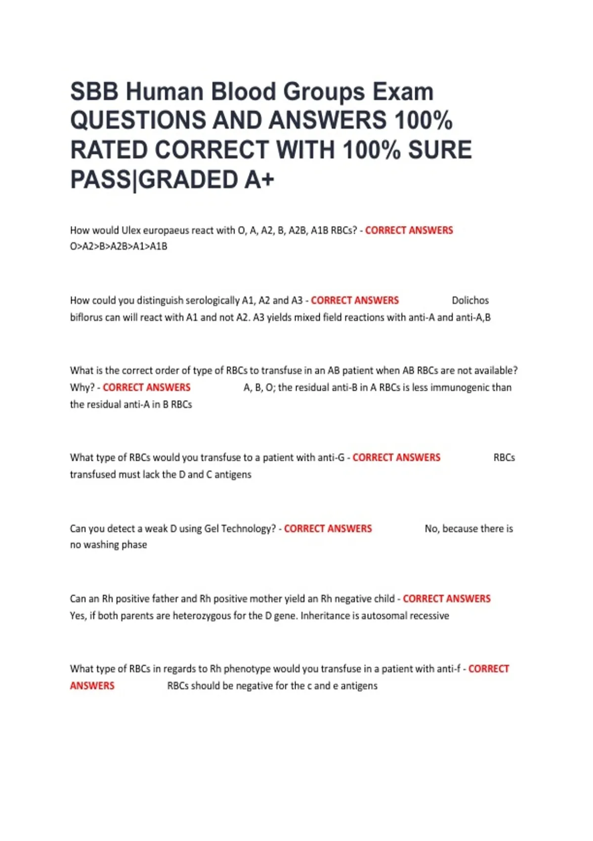Anti-IH would react best with which red blood cells? - CORRECT ANSWERS O RBCs