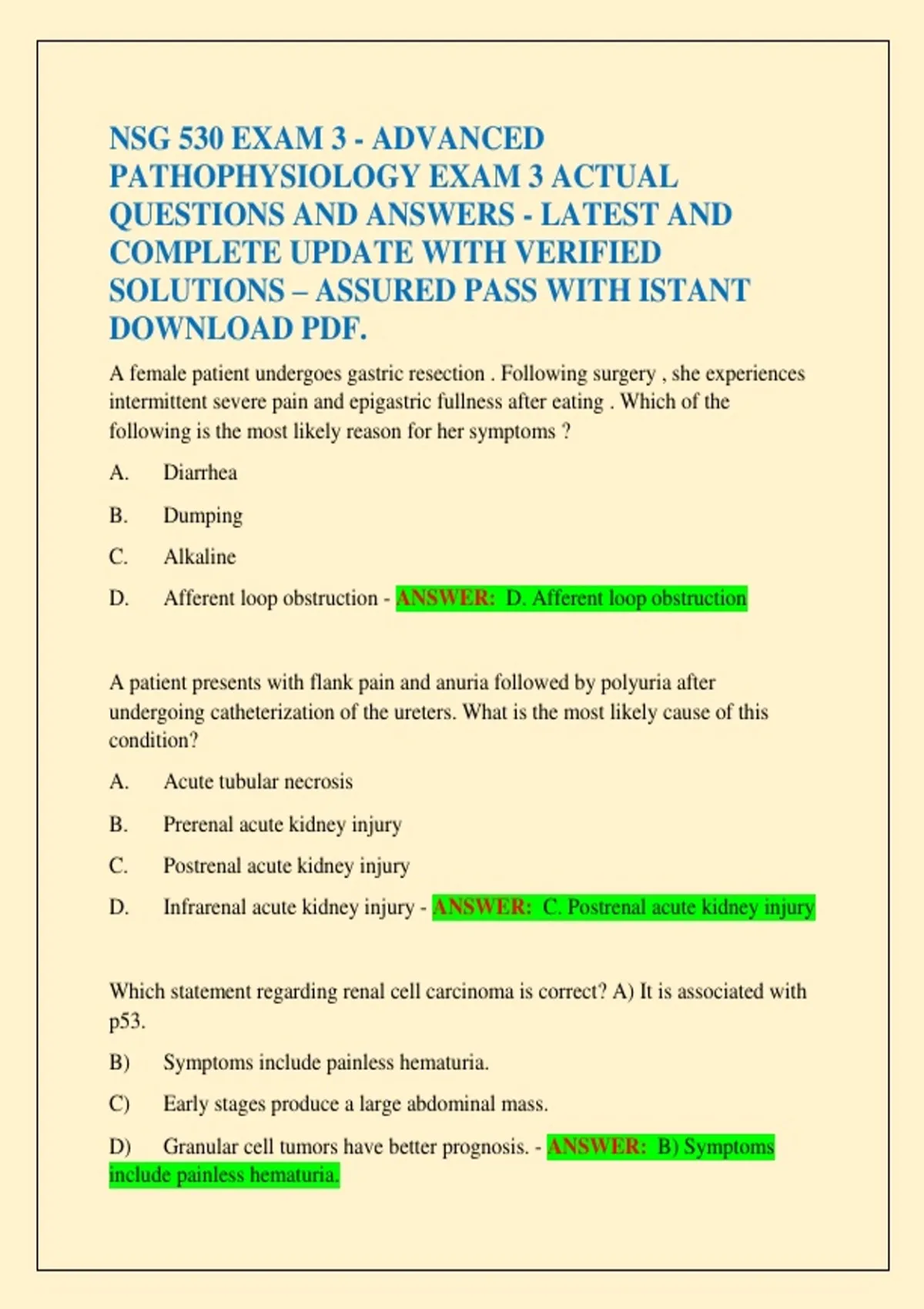 PATHOPHYSIOLOGY EXAM 3 ACTUAL