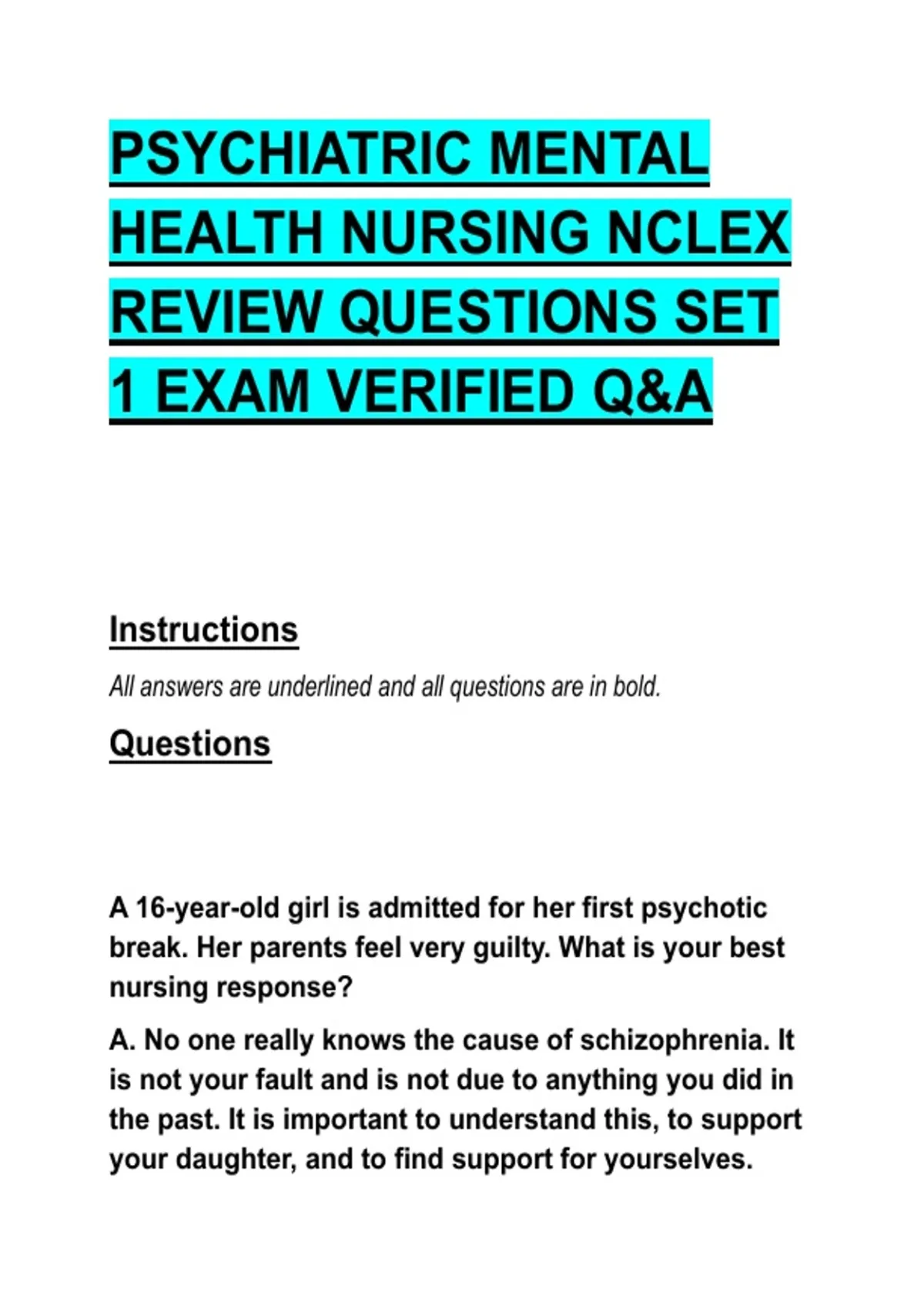 1 EXAM VERIFIED Q&A