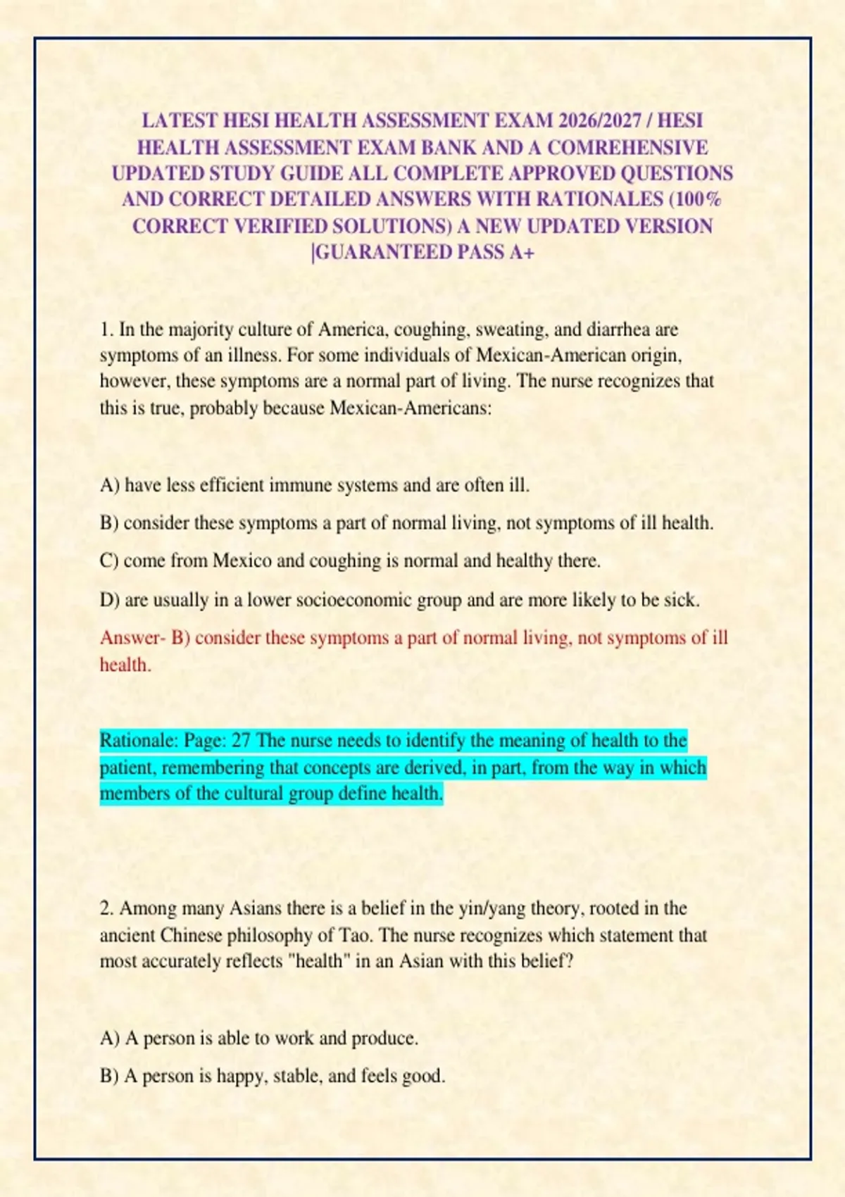 HEALTH ASSESSMENT EXAM BANK AND A COMPREHENSIVE