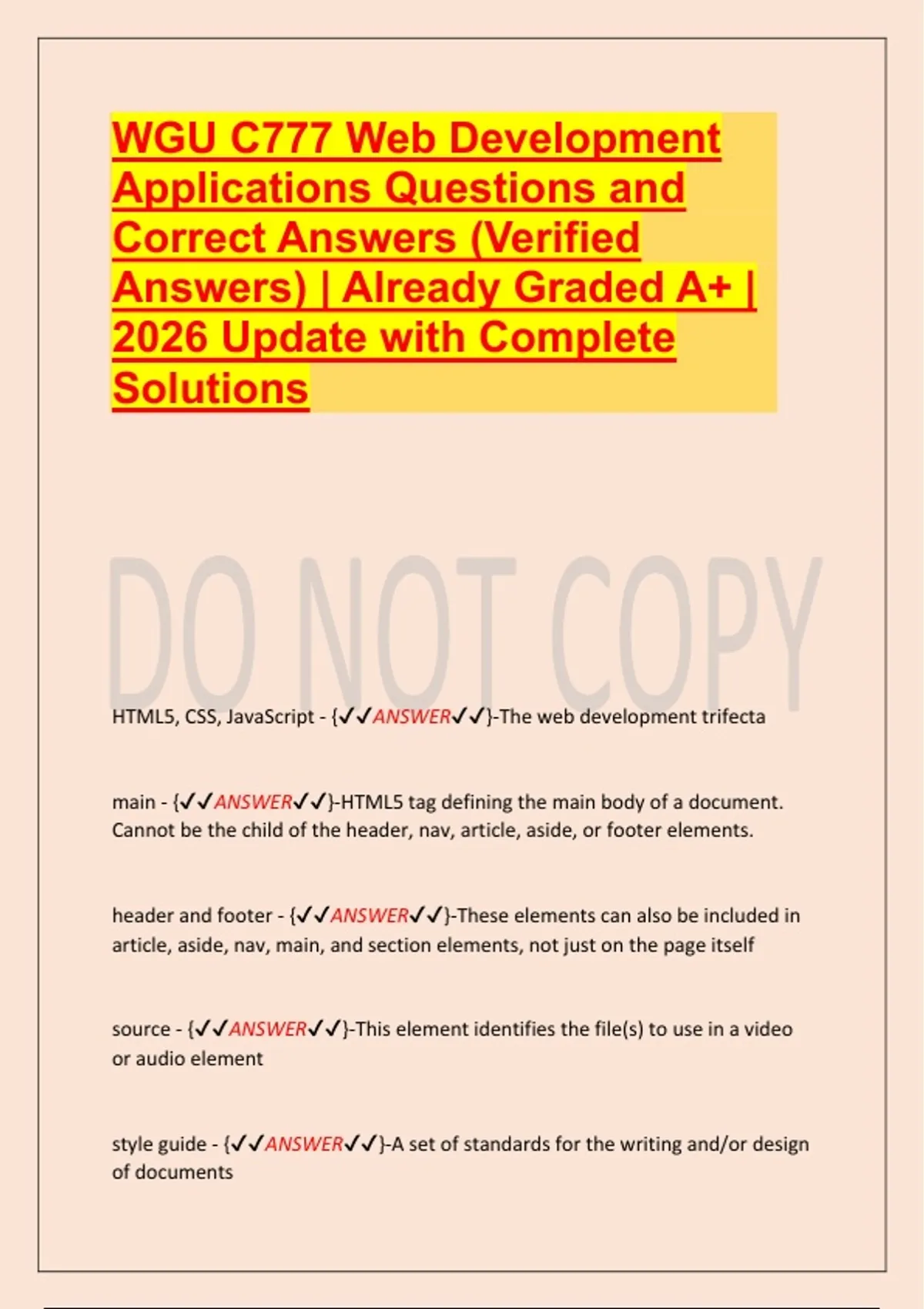 WGU C777 Web Development Applications Questions and Correct Answers