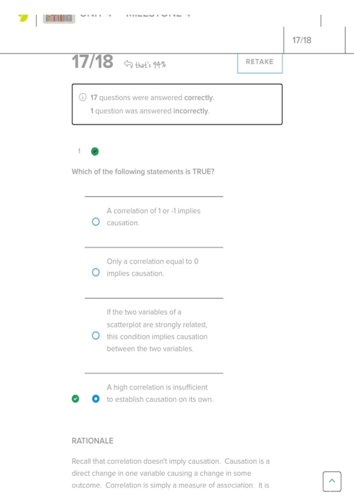17/18  that's 94% RETAKE