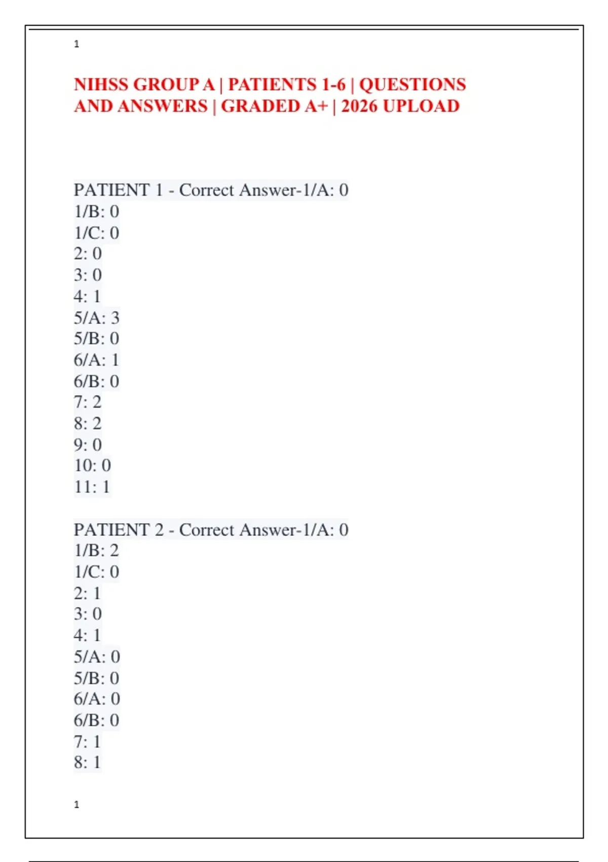 NIHSS GROUP A | PATIENTS 1-6 | QUESTIONS