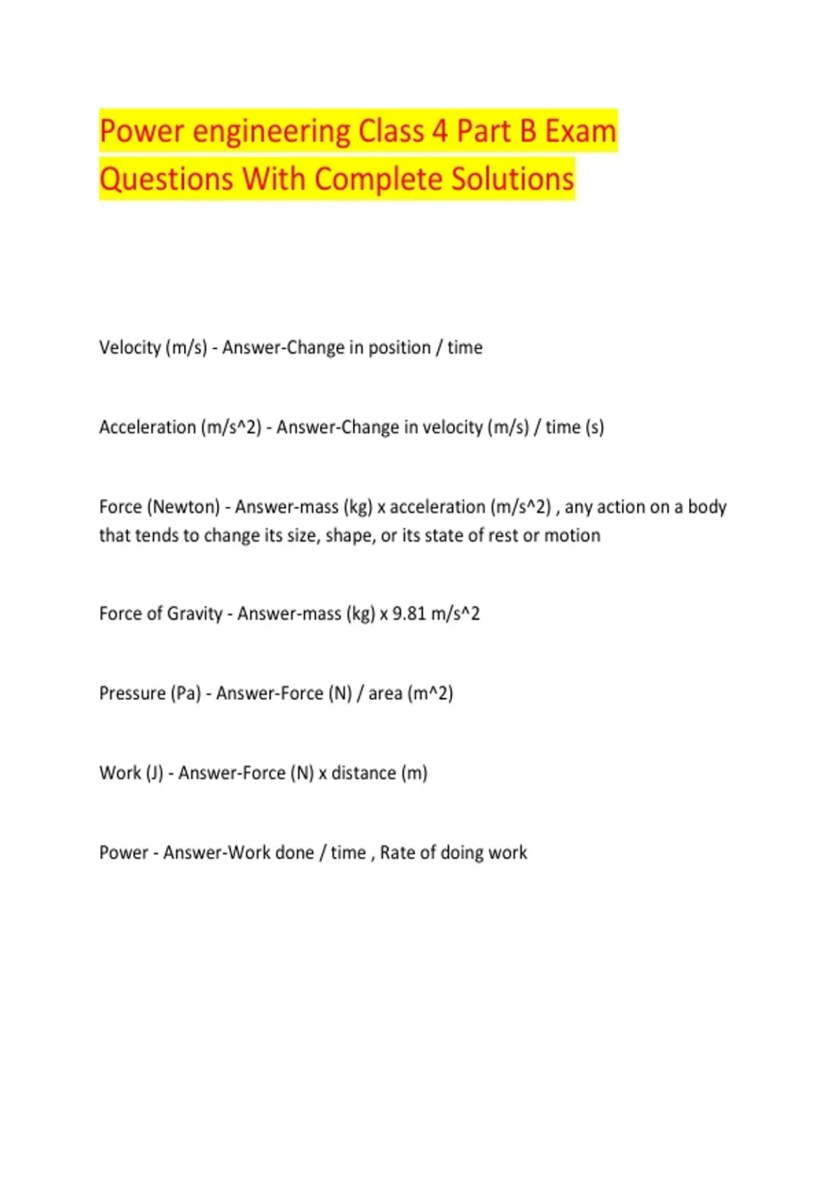 Power engineering Class 4 Part B Exam Questions With Complete Solutions