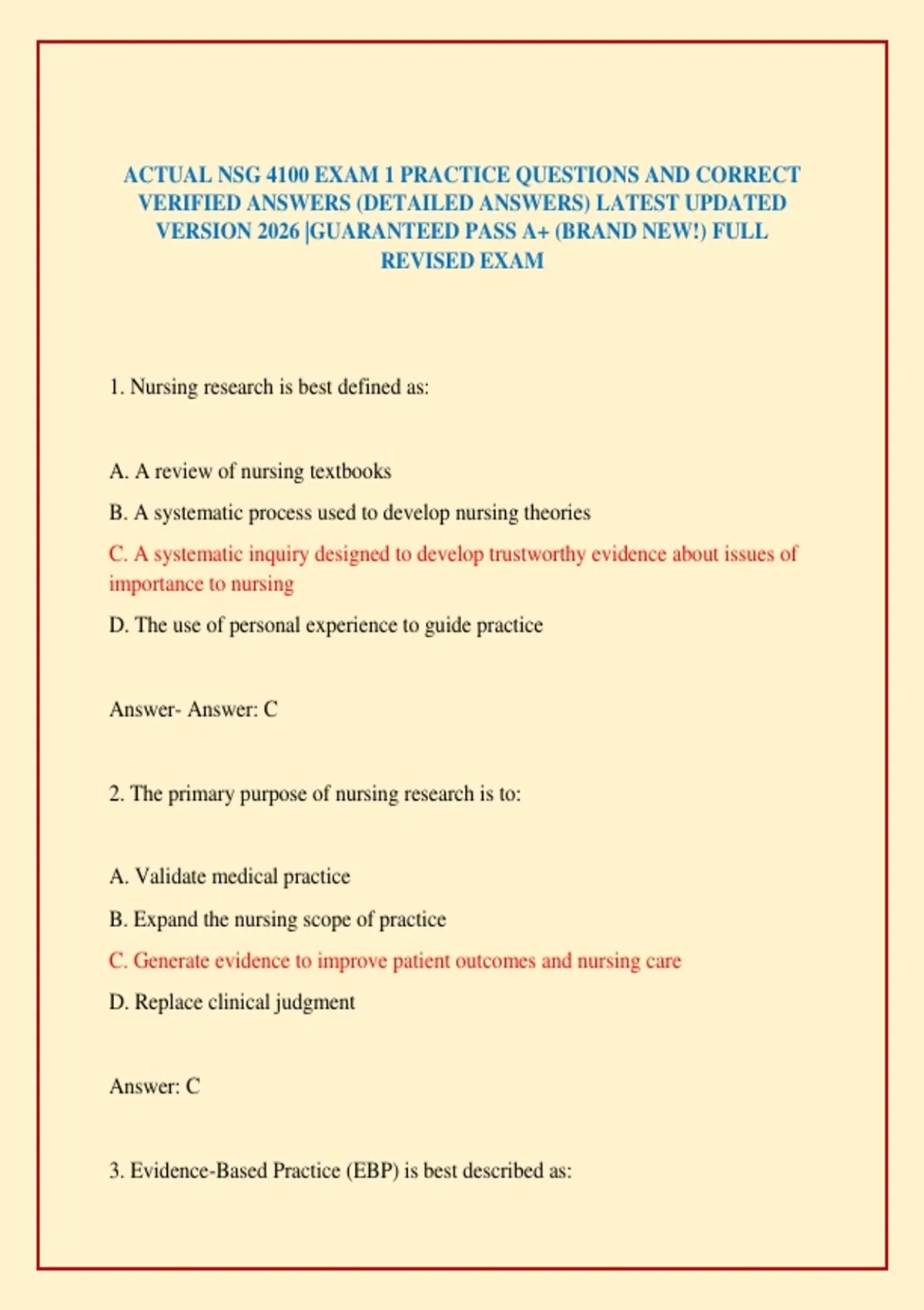 ACTUAL NSG 4100 EXAM 1 PRACTICE QUESTIONS AND CORRECT VERIFIED ANSWERS (DETAILED ANSWERS) LATEST UPDATED VERSION 2026 |GUARANTEED PASS A+ (BRAND NEW!) FULL REVISED EXAM