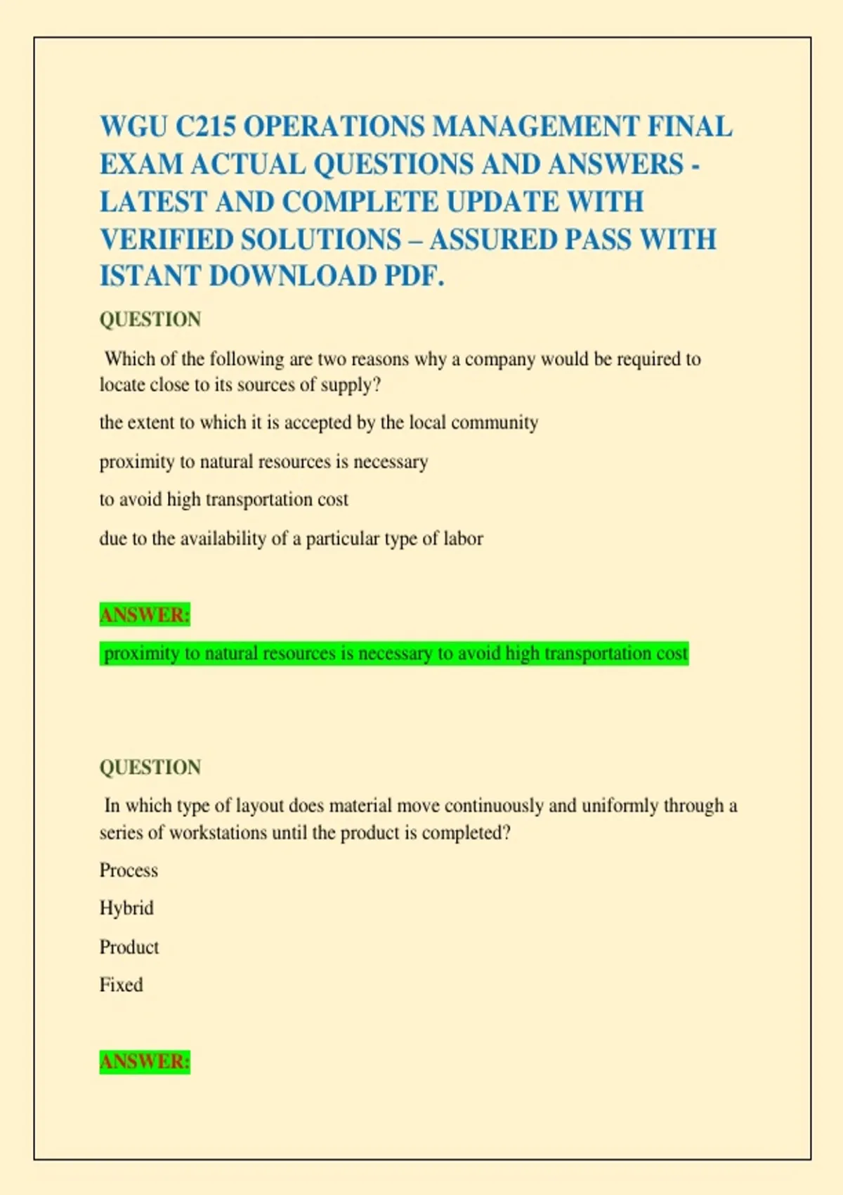 EXAM ACTUAL QUESTIONS AND ANSWERS -