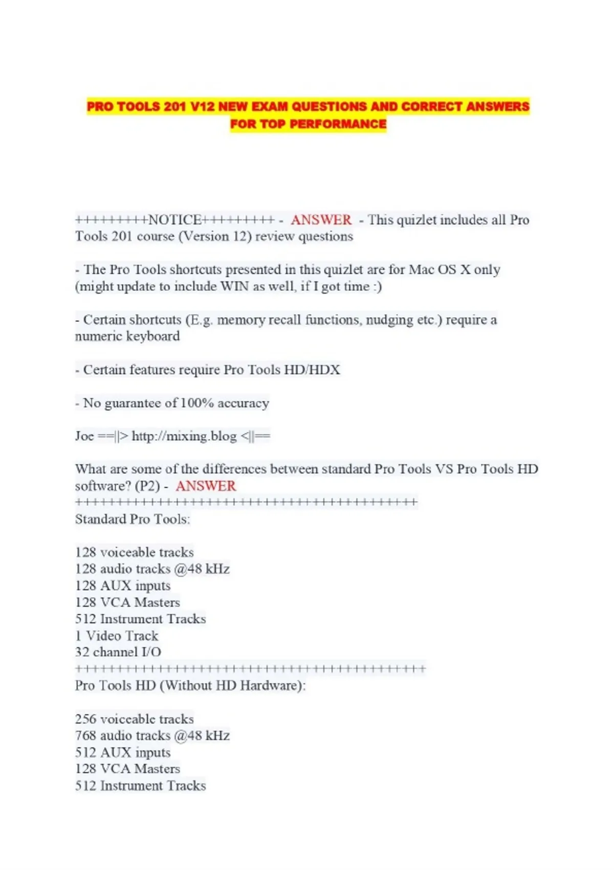 PRO TOOLS 201 V12 NEW EXAM QUESTIONS AND CORRECT ANSWERS FOR TOP PERFORMANCE