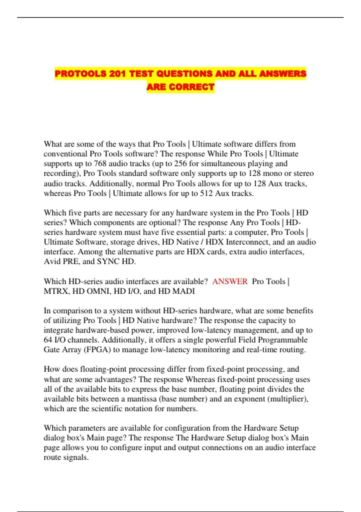 PROTOOLS 201 TEST QUESTIONS AND ALL ANSWERS