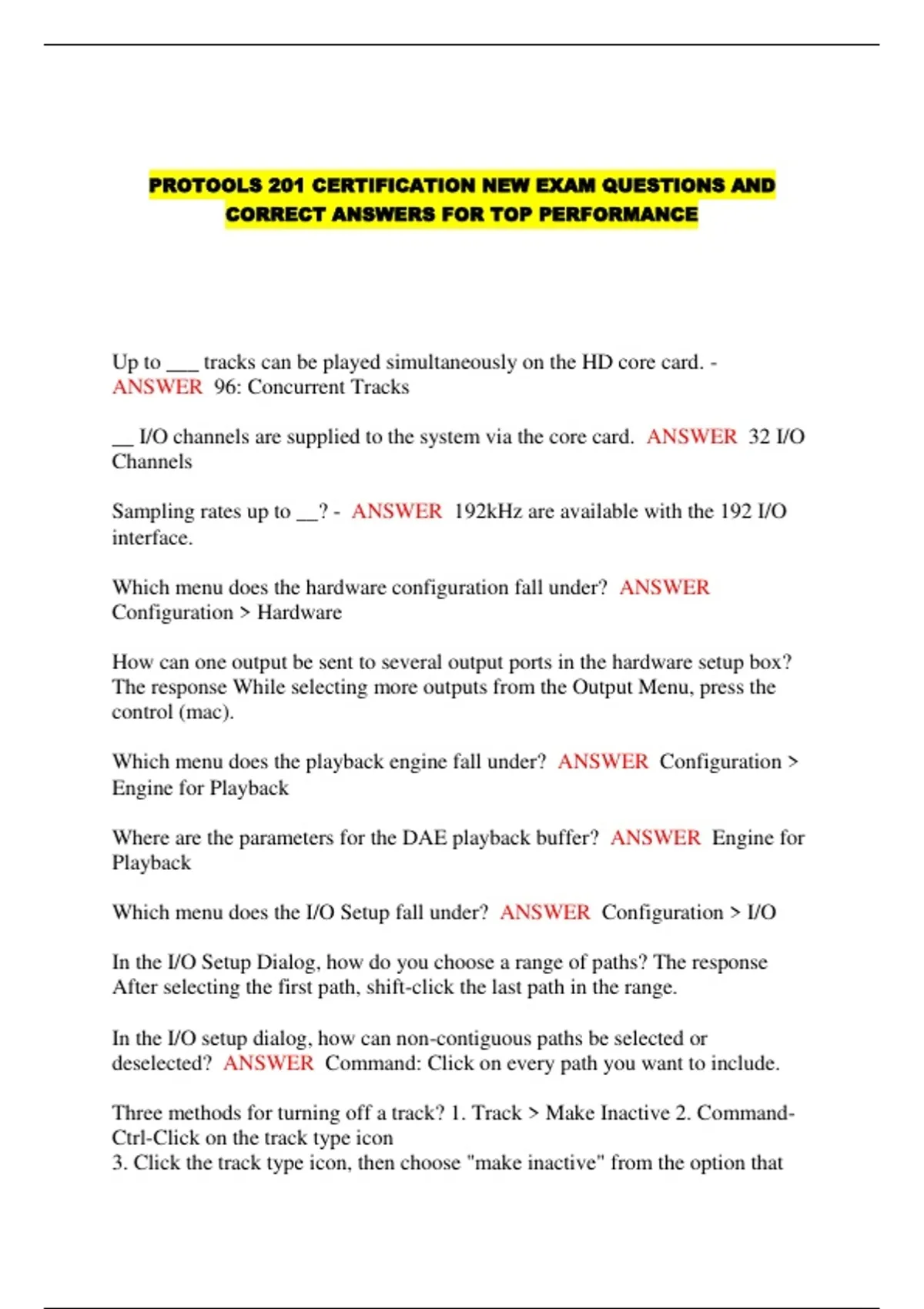 PROTOOLS 201 CERTIFICATION NEW EXAM QUESTIONS AND