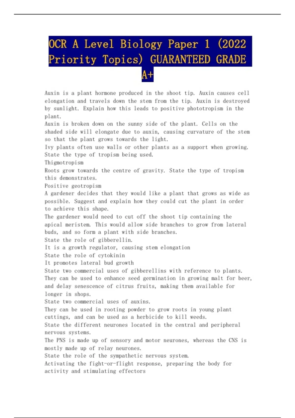 Priority Topics) GUARANTEED GRADE