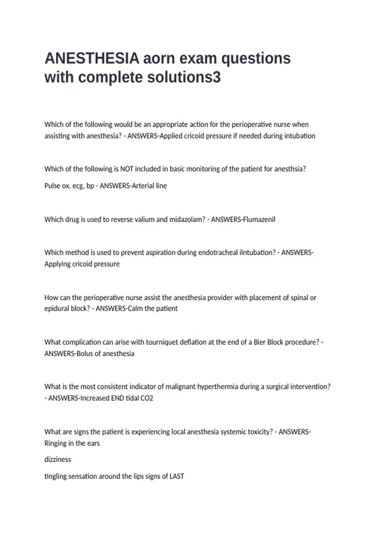 ANESTHESIA aorn exam questions