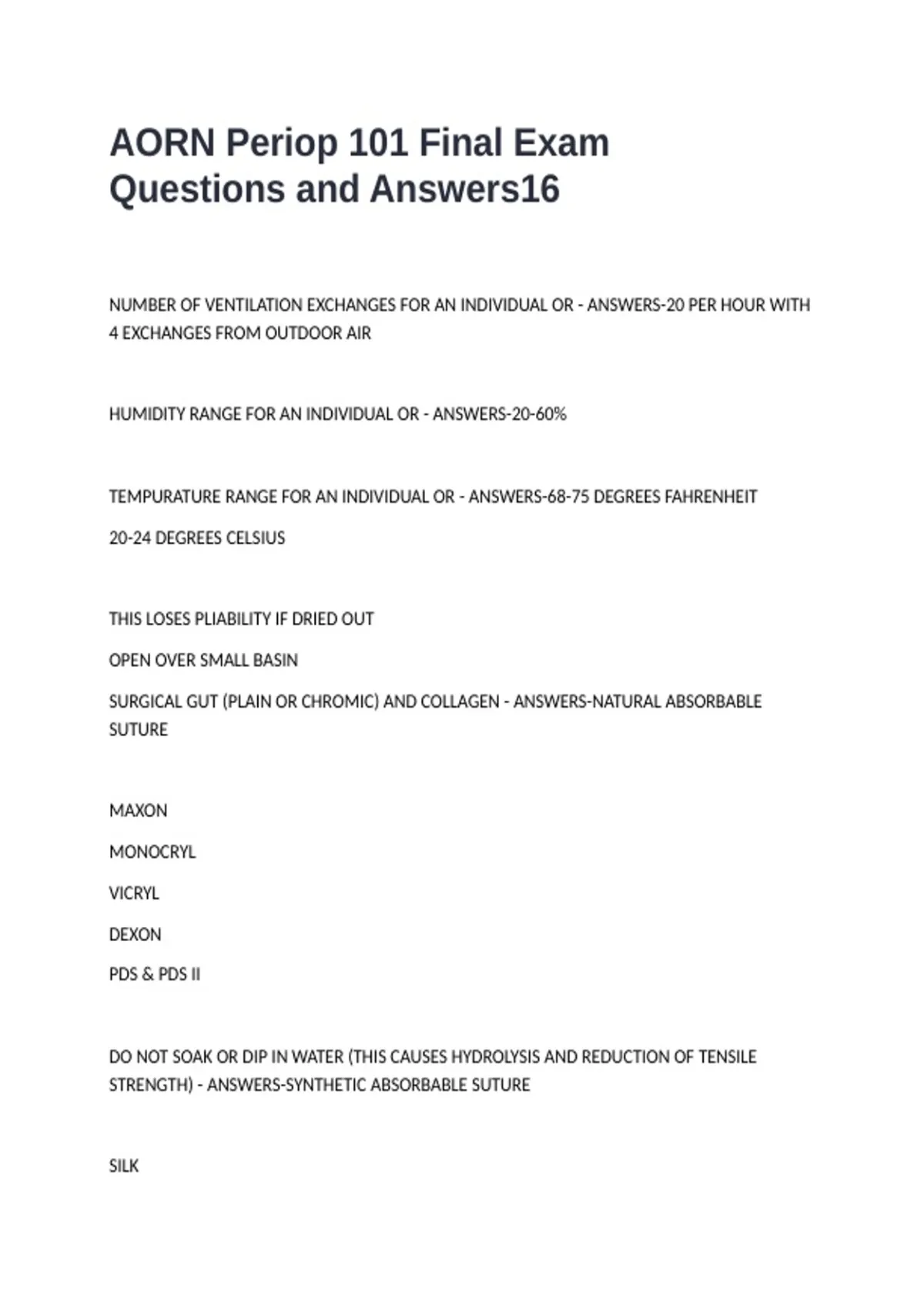 STRENGTH) - ANSWERS-SYNTHETIC ABSORBABLE SUTURE