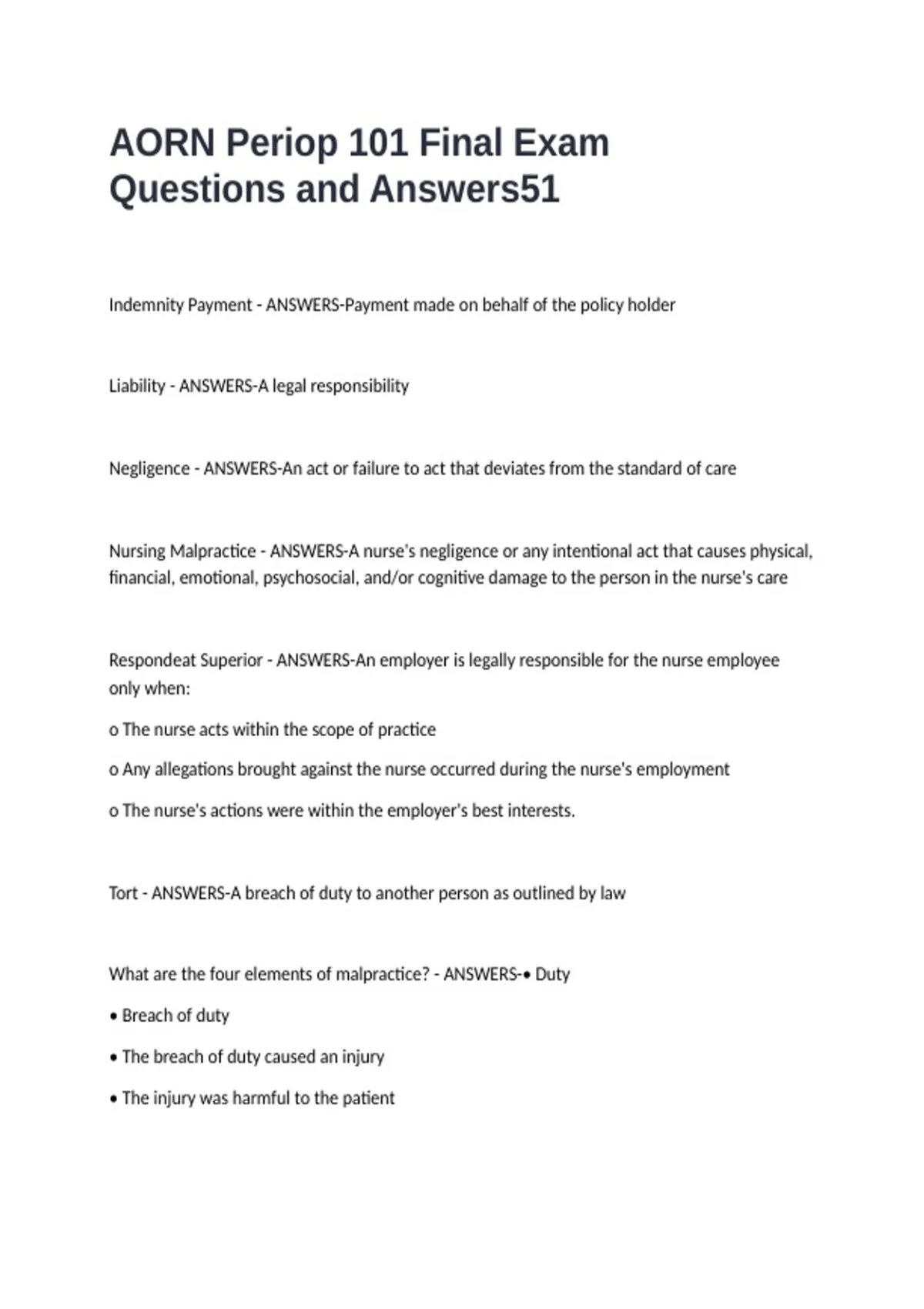 Respondeat Superior - ANSWERS-An employer is legally responsible for the nurse employee