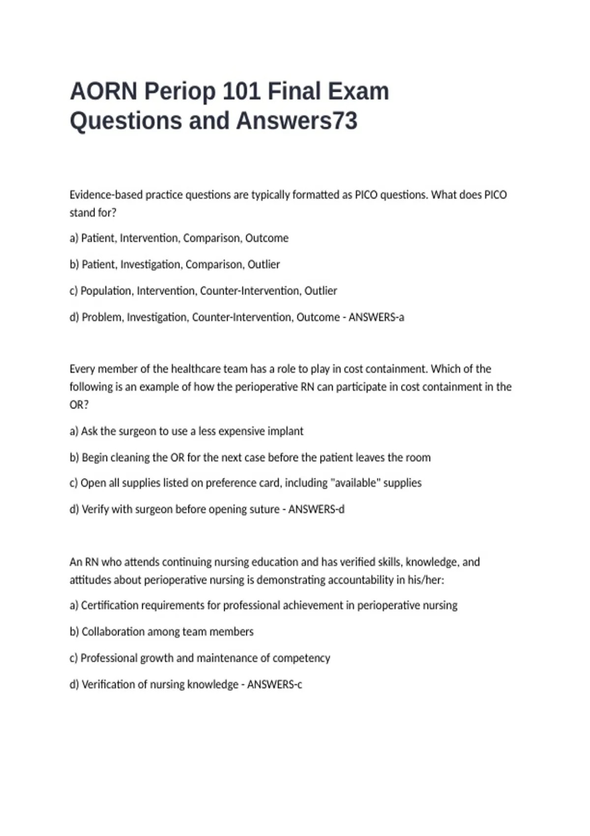 d) Association of Surgical Post Anesthesia Nursing - ANSWERS-c