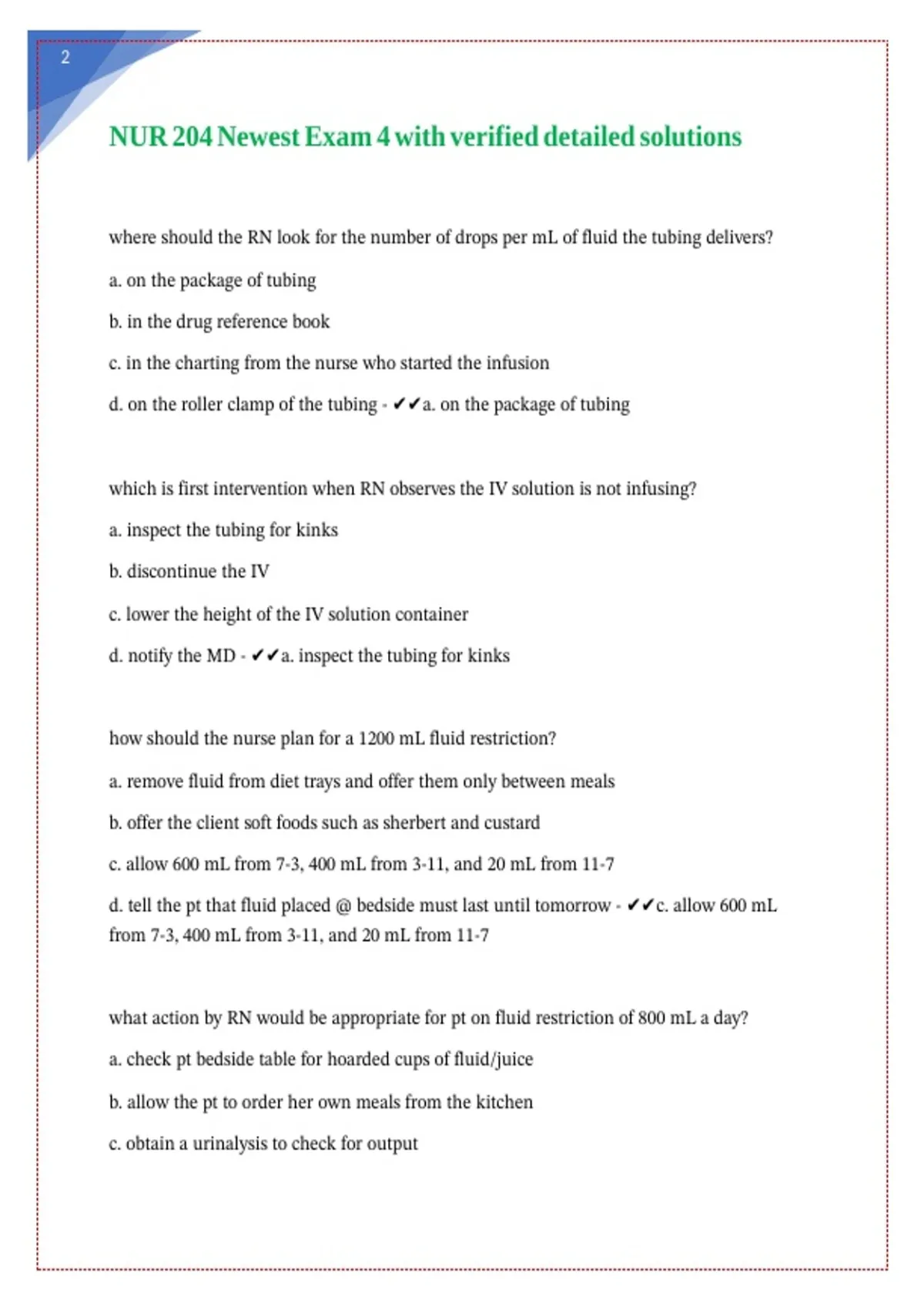 NUR 204 Newest Exam 4 with verified detailed solutions