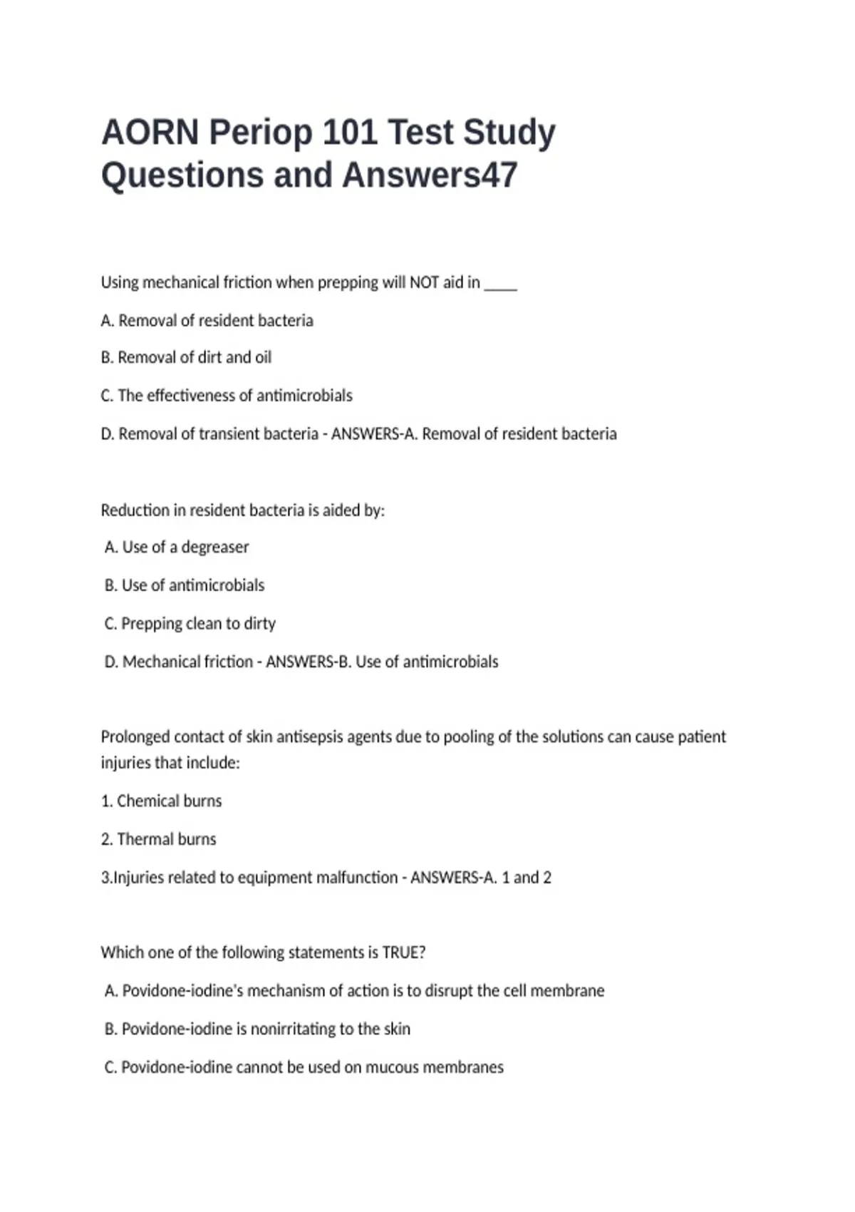 , D. Heating povidone-iodine may decrease its effectiveness - ANSWERS-D. Heating povidone-