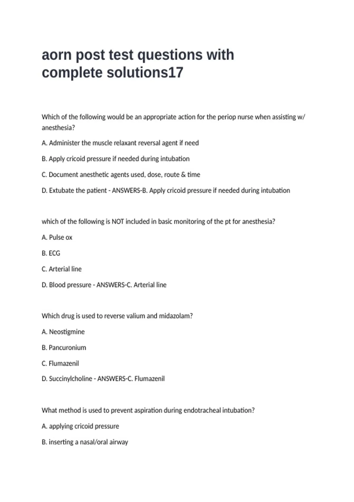 D. Invasive techniques - ANSWERS-A. Applying cricoid pressure