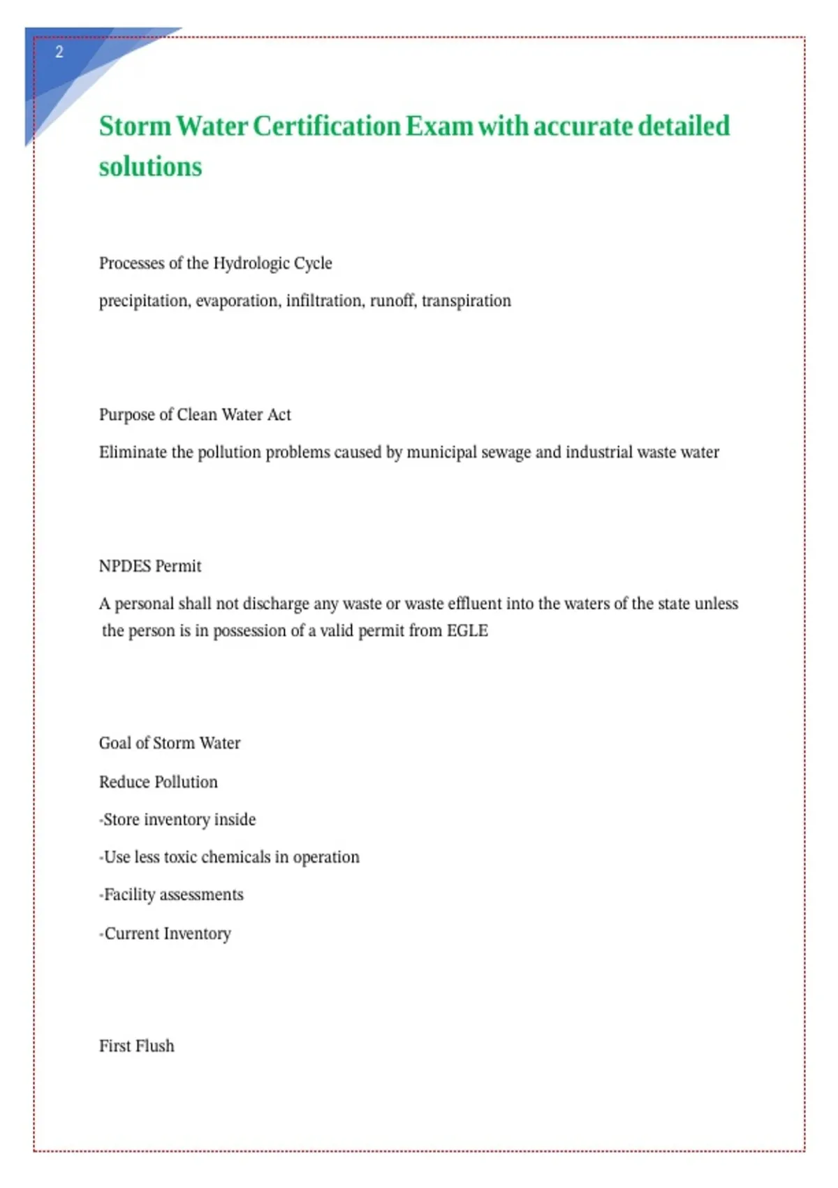Storm Water Certification Exam with accurate detailed solutions