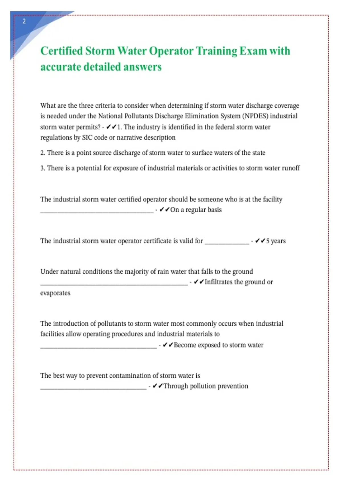 Certified Storm Water Operator Training Exam with || || || || || || ||